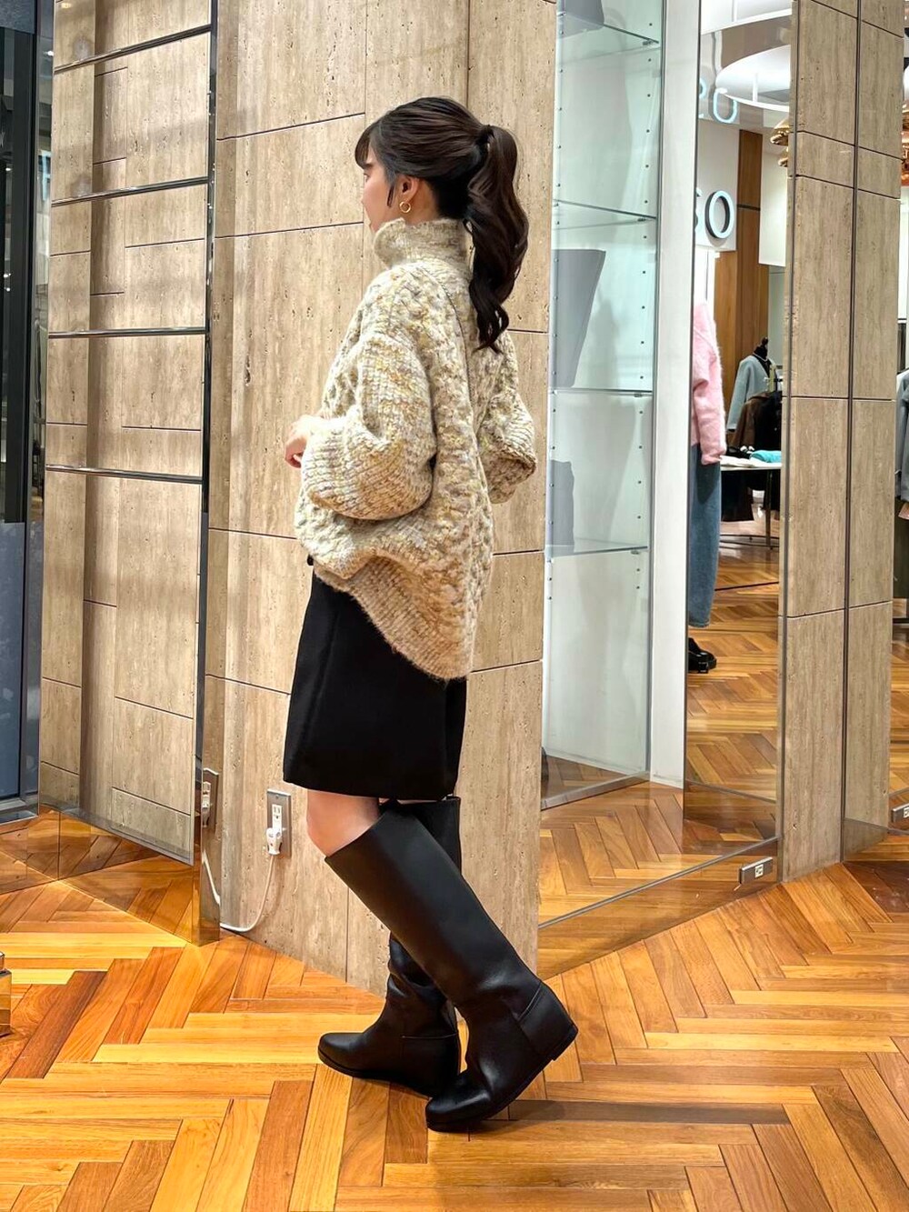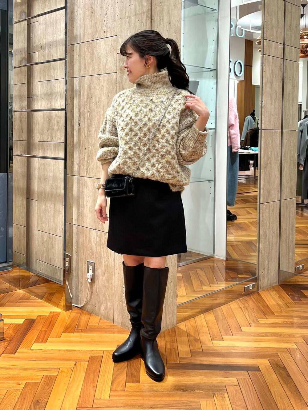 低身長さんでも挑戦できるロングブーツを使ったコーディネートです!ぜひ参考にしてみてください♪