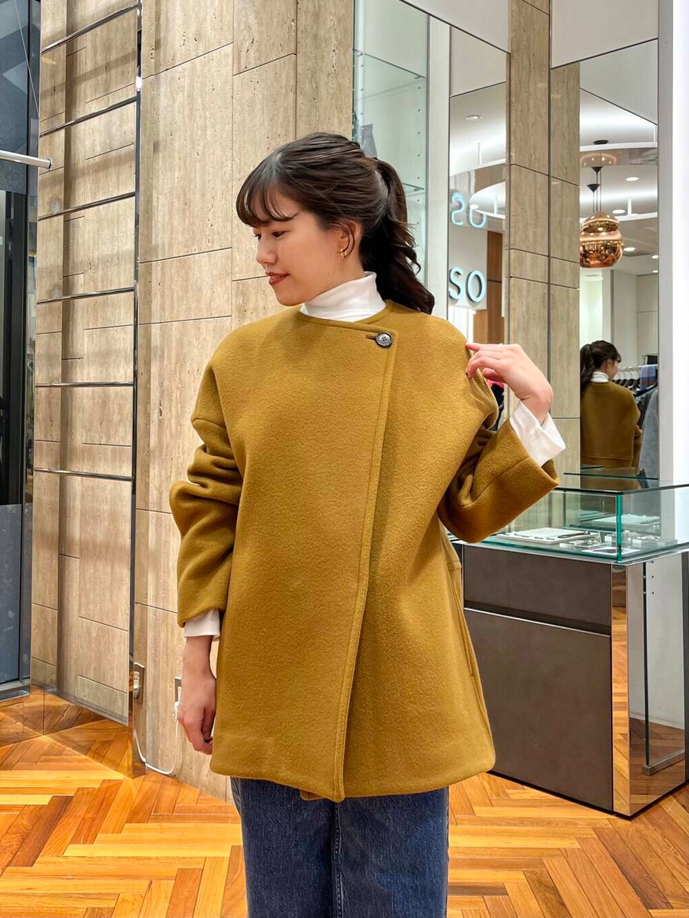 上品な風合いにキャメルカラーで大人カジュアルにも仕上がるコートです!