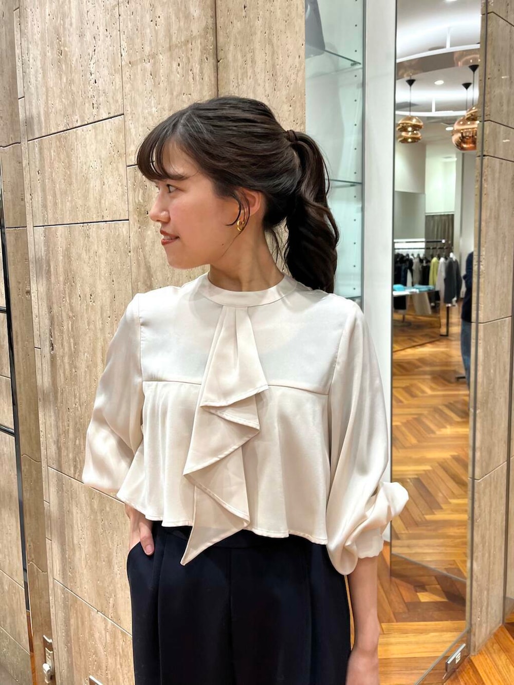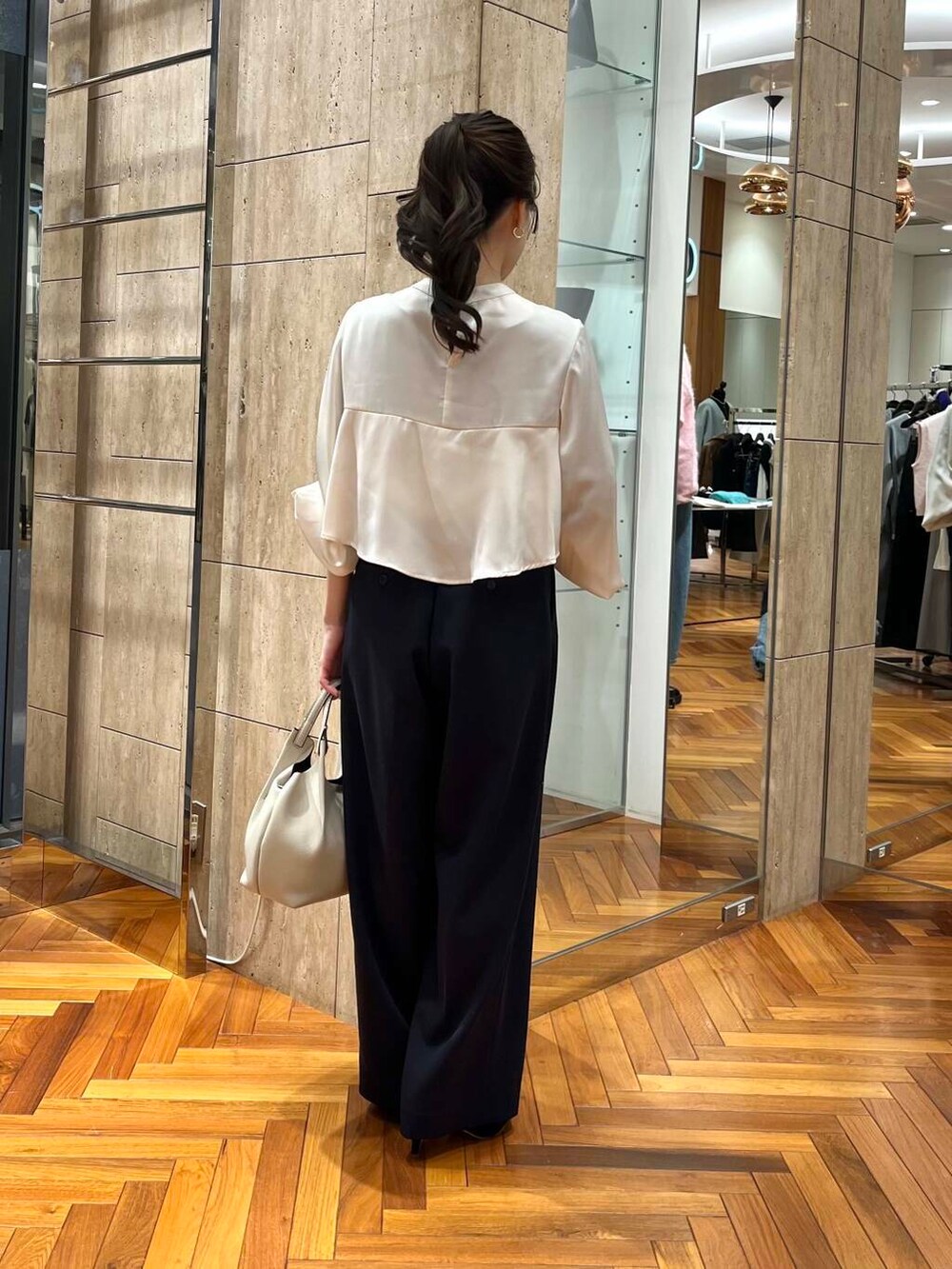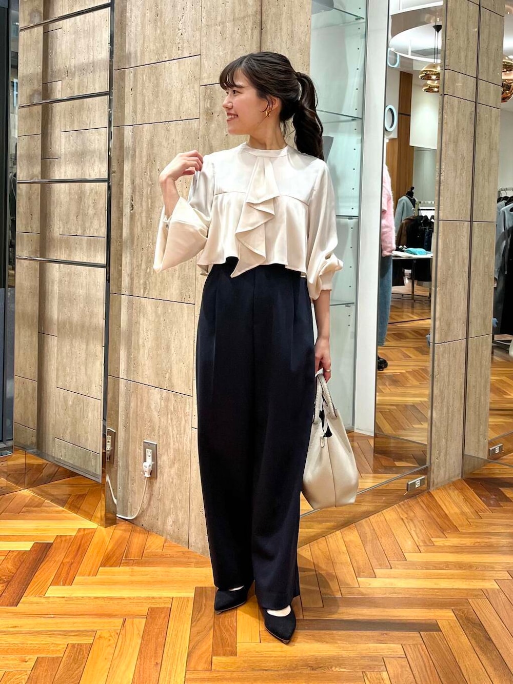 パンツでブラウスをインしてもメリハリが出るのでとってもバランス良く着ていただけます!