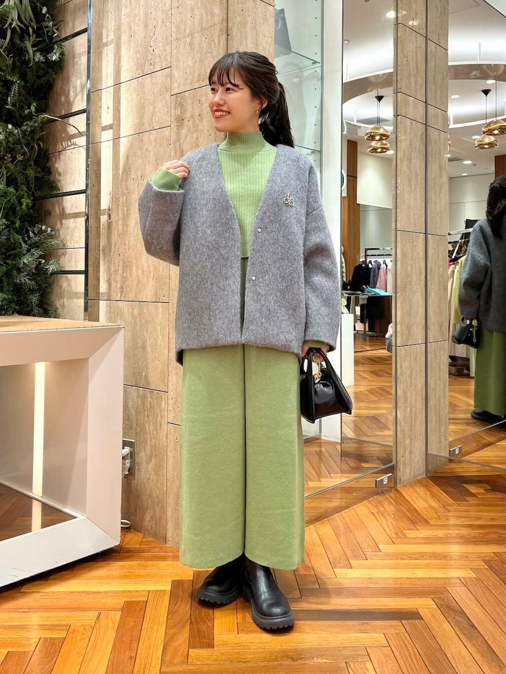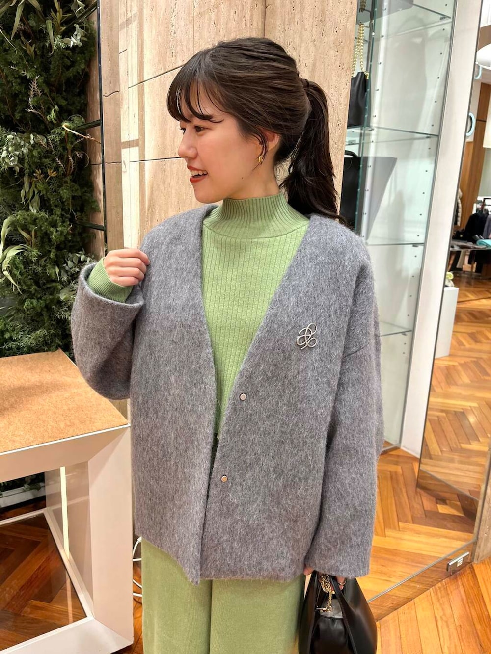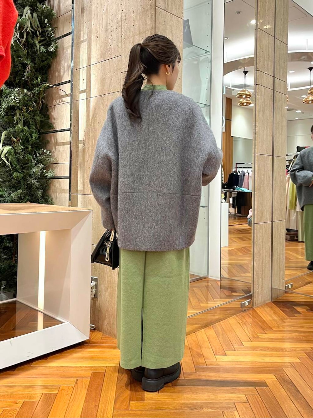 着丈の短いアウターで小柄な方でもバランス良く着こなしていただけますよ◎