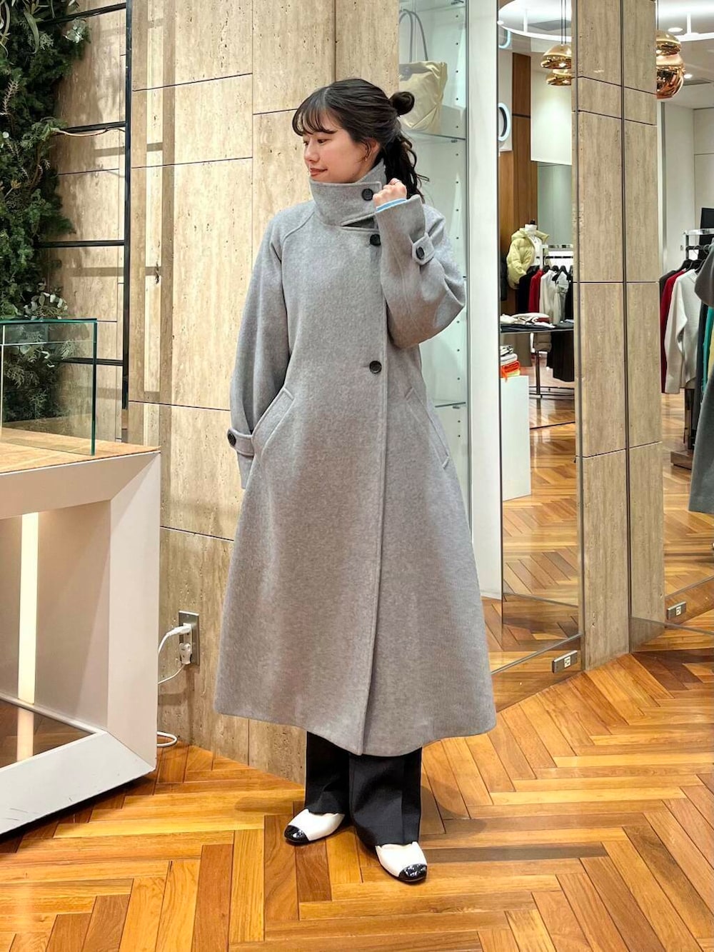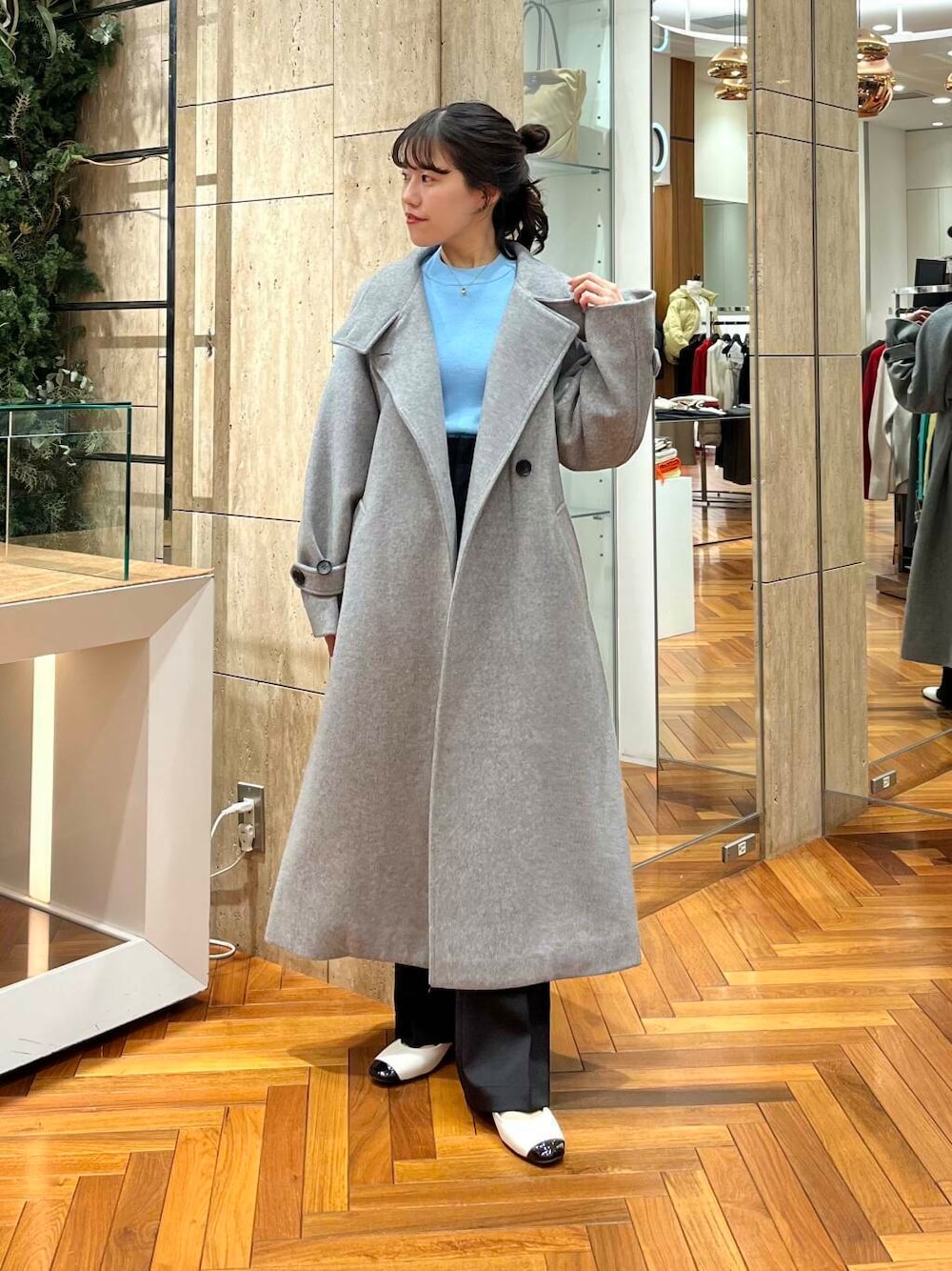 着心地:ロング丈ですが思ったよりも重すぎないです。2way仕様でスタンドカラーとしても使えるので気分や気温に応じで変えていてください♪