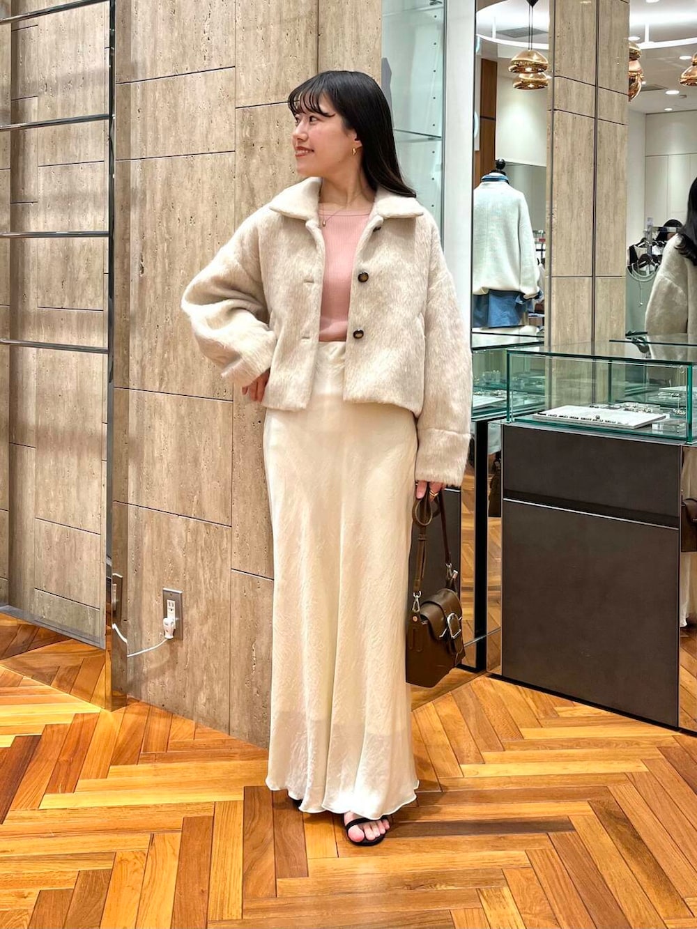 春に近づくタイミングでも長く使えるアウターなのでインナーをピンクやホワイトなど春っぽく着こなすのもおすすめですよ!