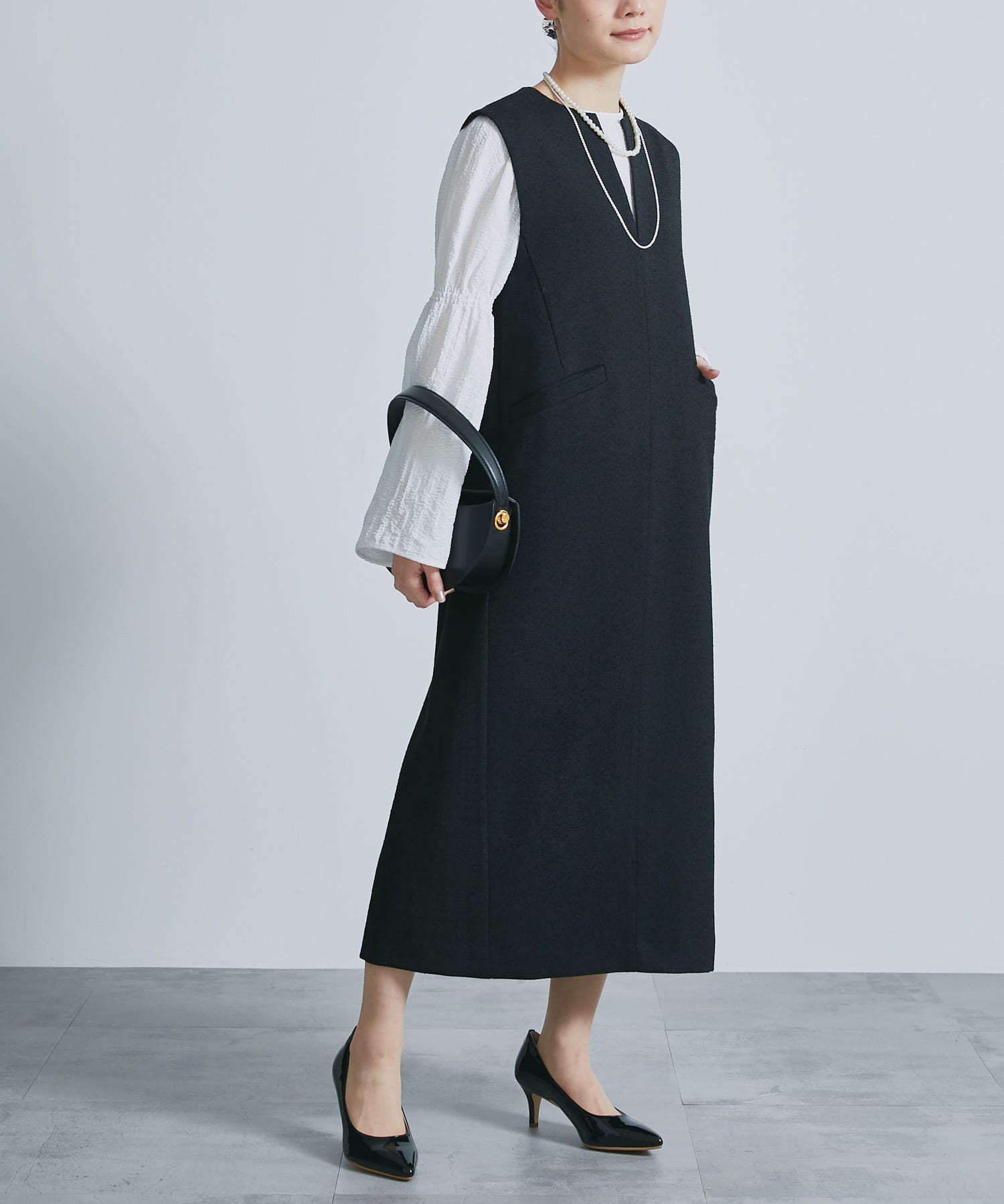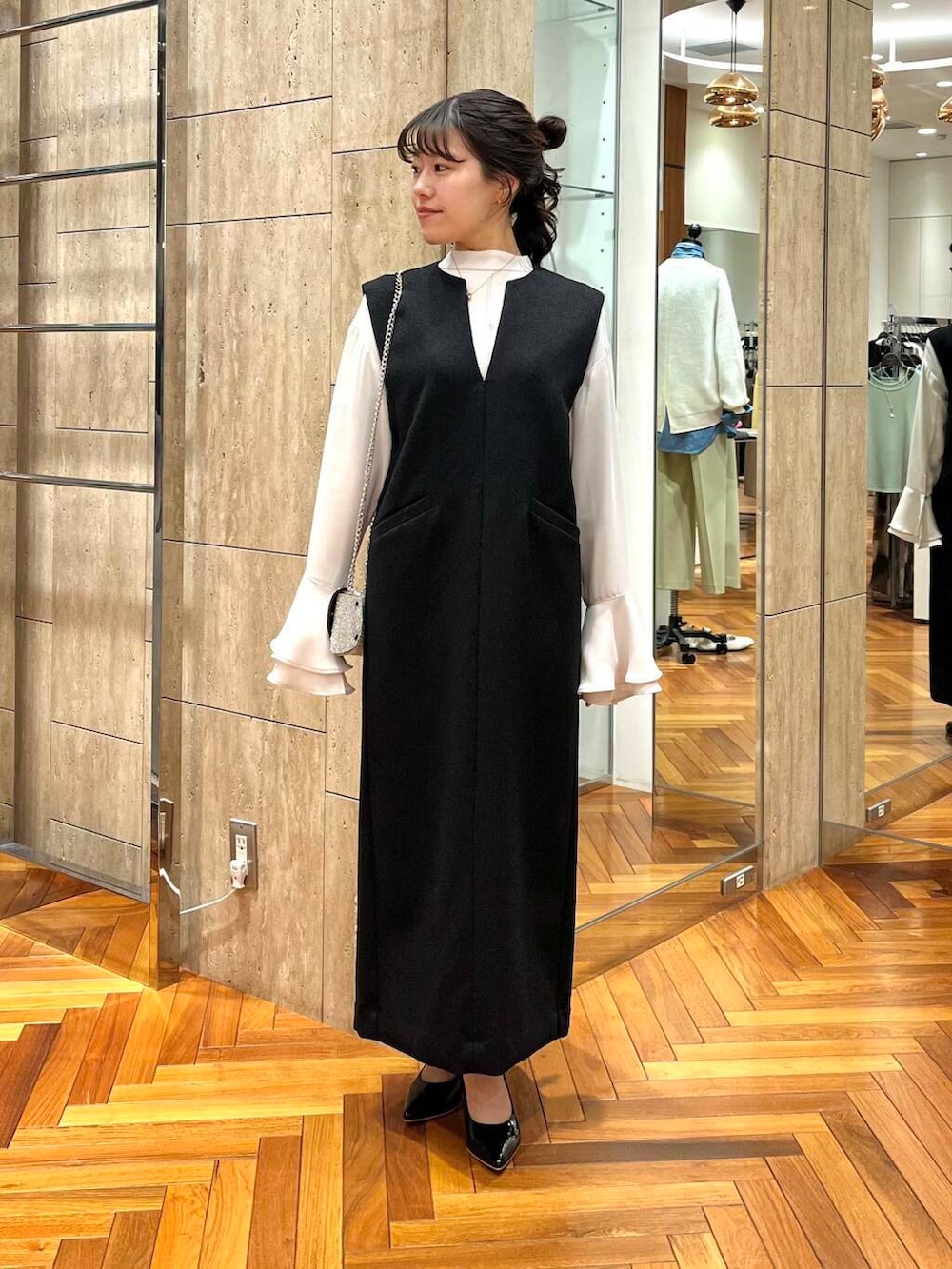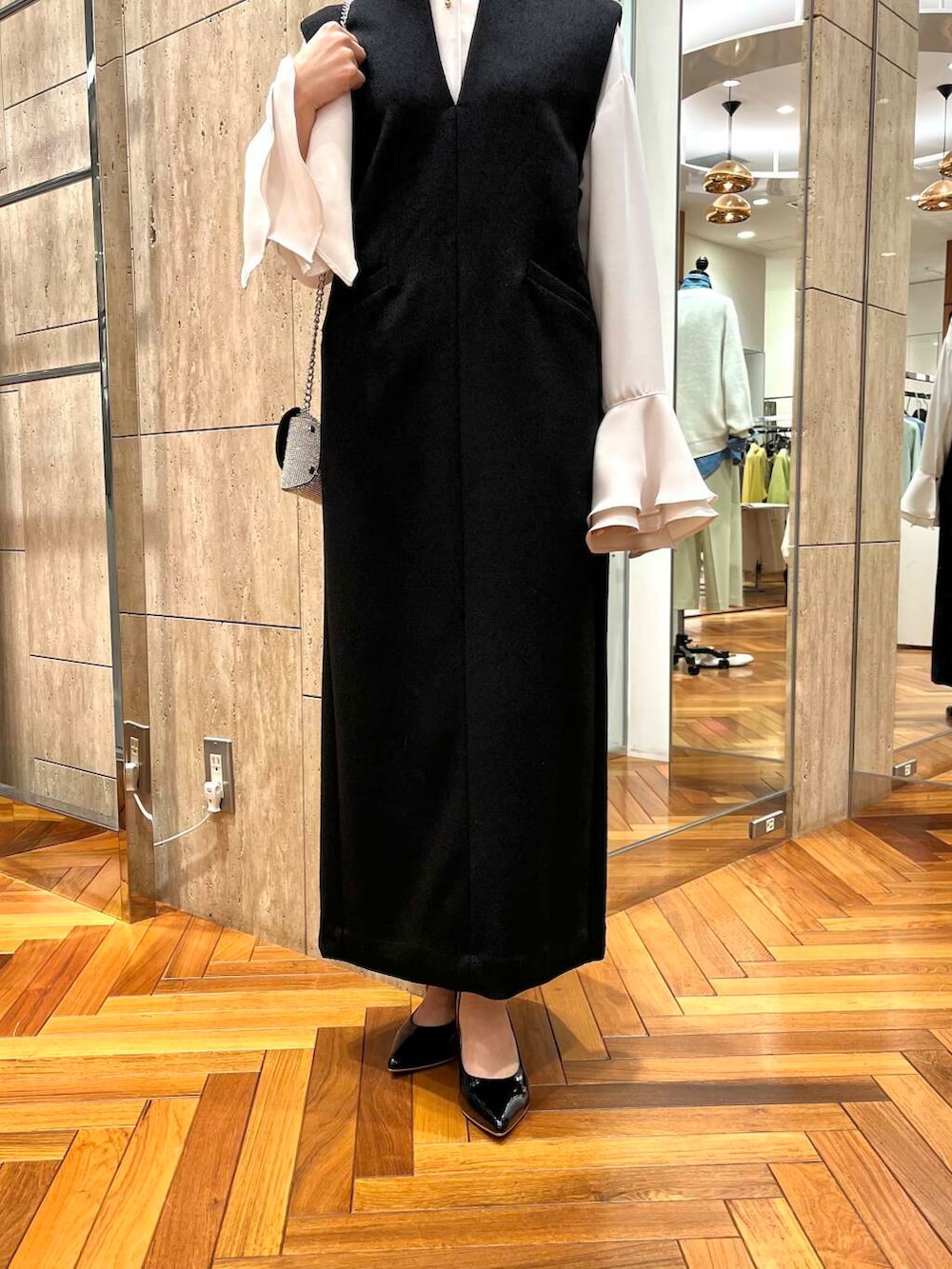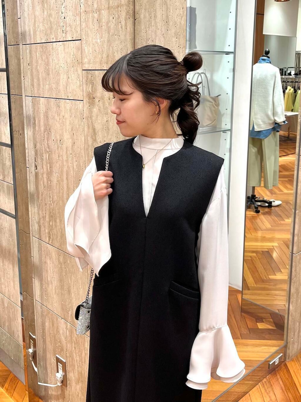 キーネック使用で抜け感が出るのでハイネックのブラウスと合わせても相性◎