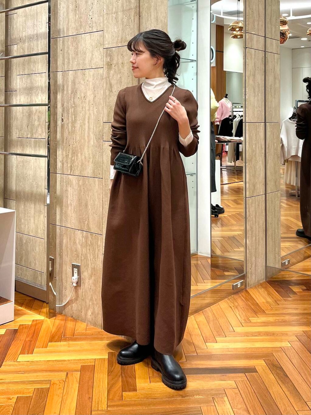 セミフォーマルなシーンや普段使いになど幅広く使えるニットワンピースですよ!