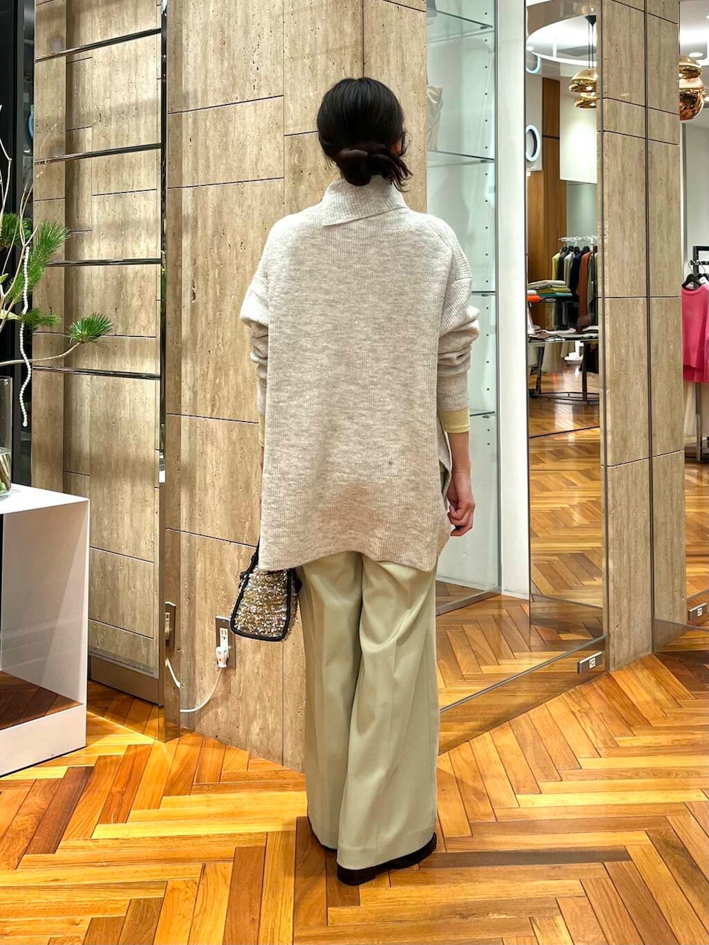 ニットは着丈が長めですがサイドスリットで抜け感を演出!