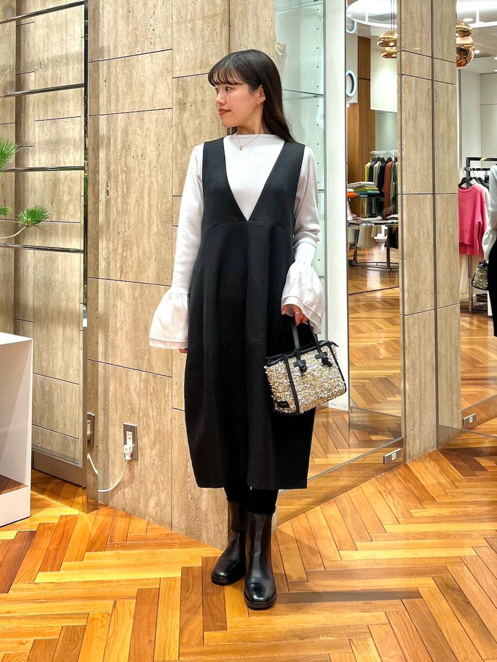 コクーン型のジャンパーワンピースは他にはないデザインなので、おしゃれな着こなしに仕上げてくれますよ♪