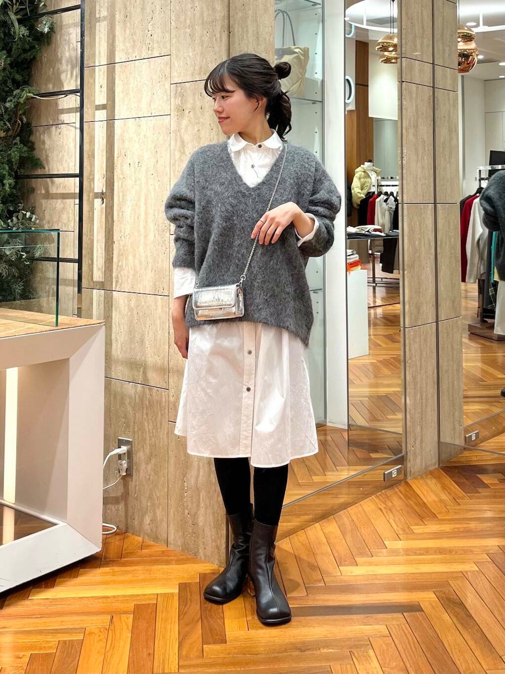 まだまだ寒い日が続きますが、ニットの着こなしをシャツワンピースで合わせることでまた違ったテイストのコーデが完成します♪