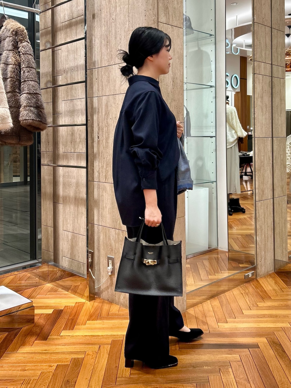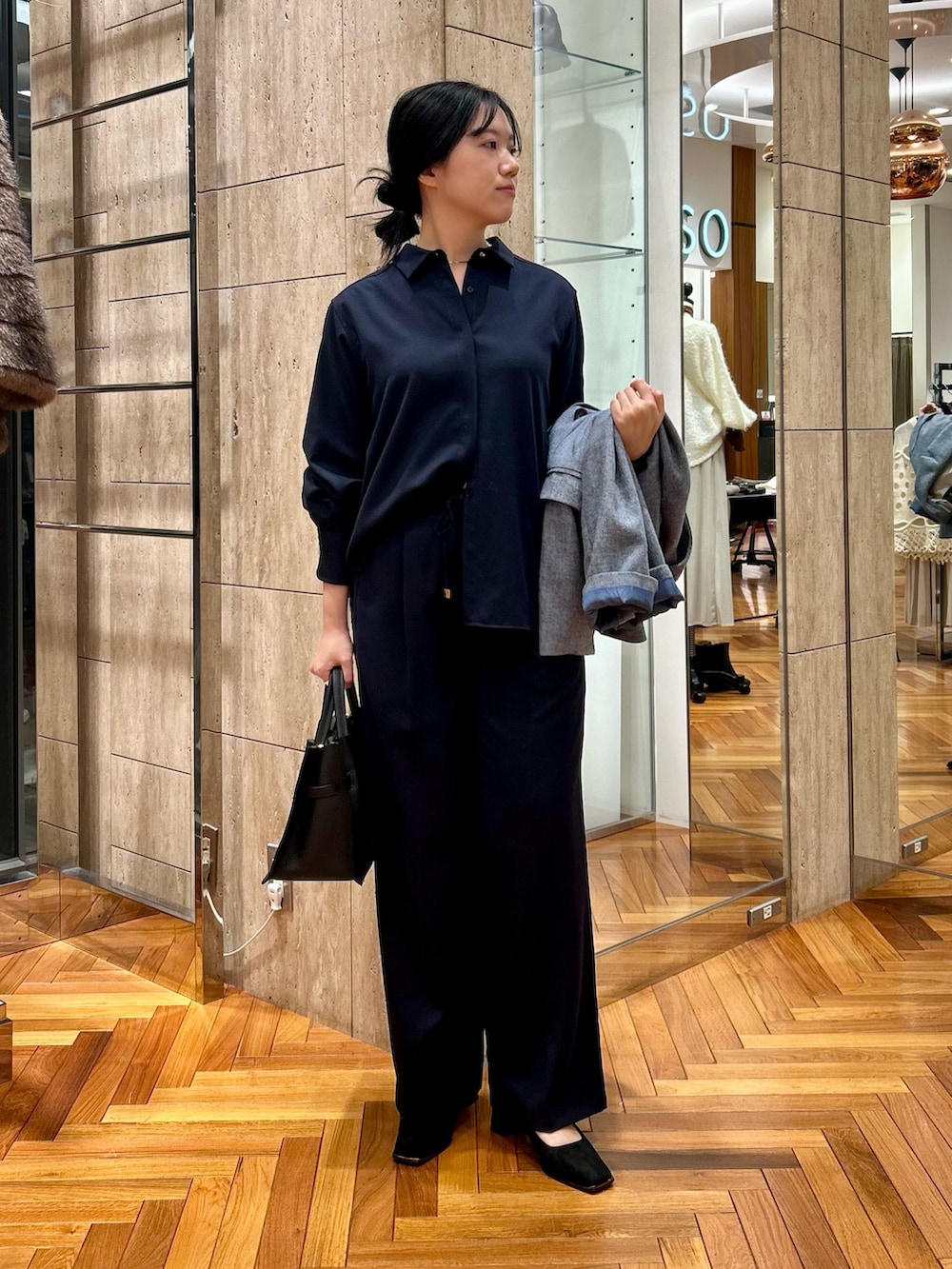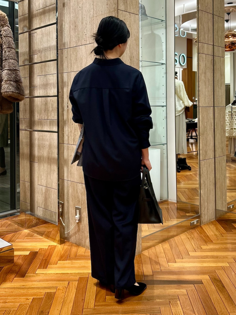 ウール混素材のセットアップは、さらりとした質感ですが真冬まで着れる暖か素材。