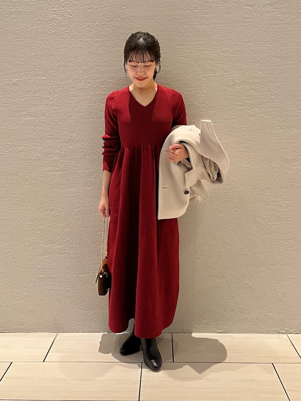 ROSSO『WEB/一部店舗限定』フォルムシルエットVネックリブワンピース- カラー: