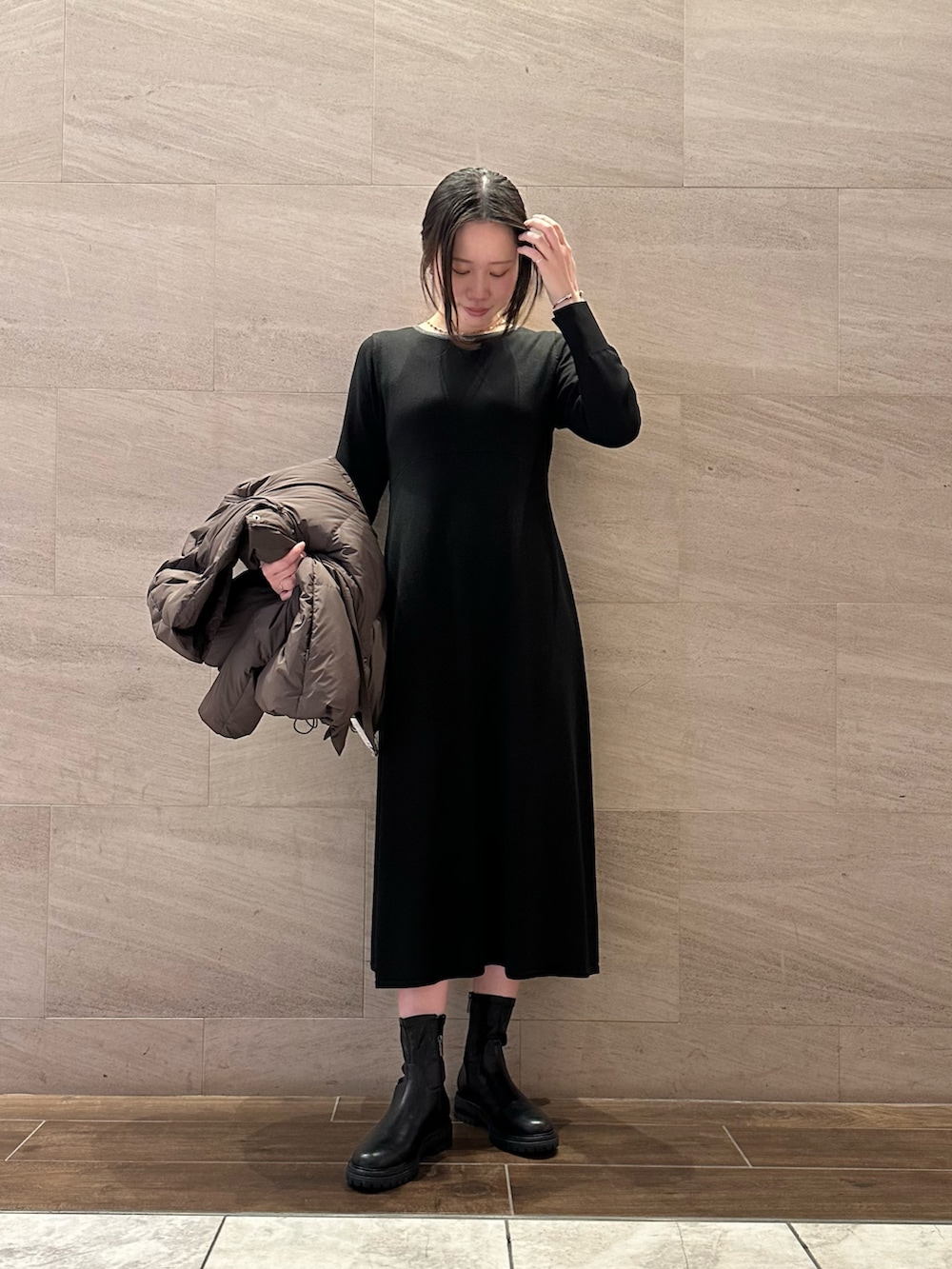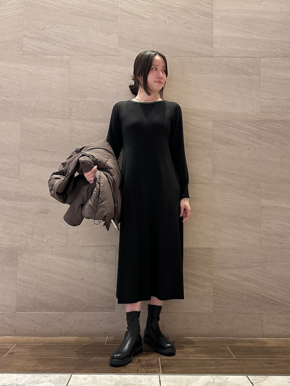 腰の切り替えやフレアシルエットがニットワンピも上品な印象に✨