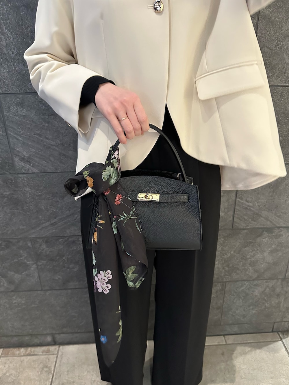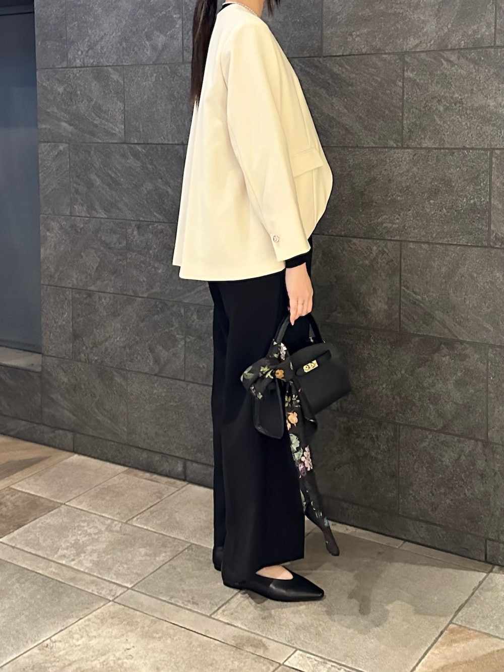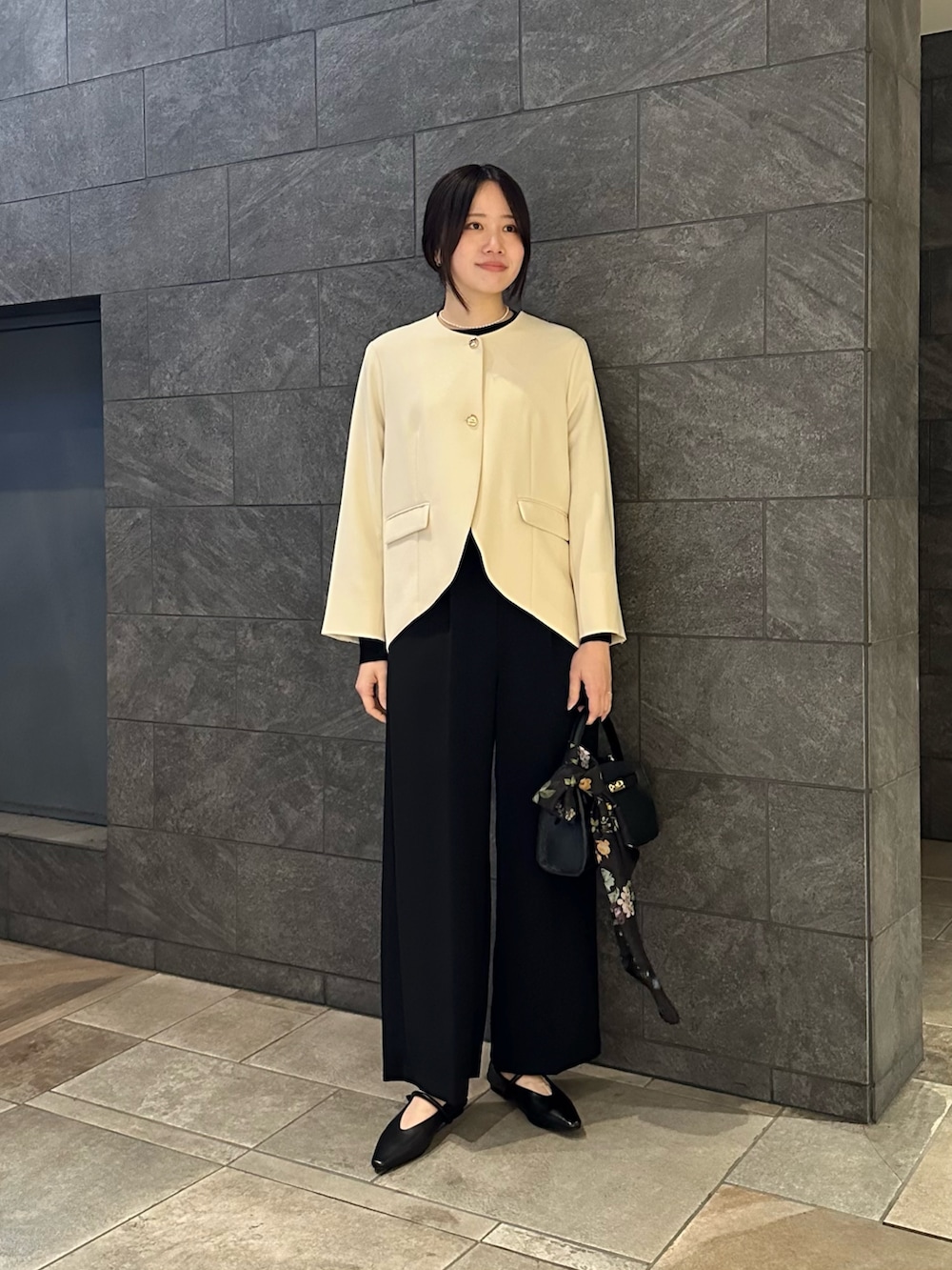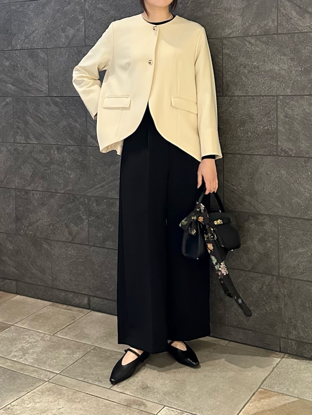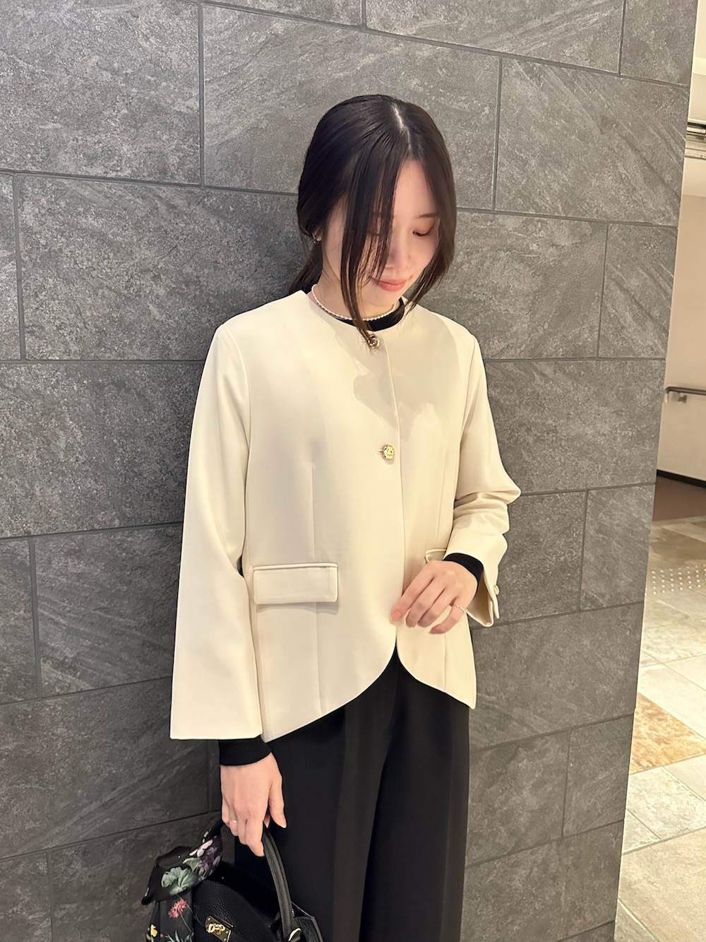 今回はラウンドヘムのデザインが目立つようOFFWHITEのジャケットとBLKのパンツで合わせてみました◎
