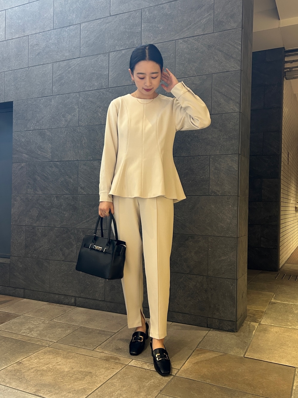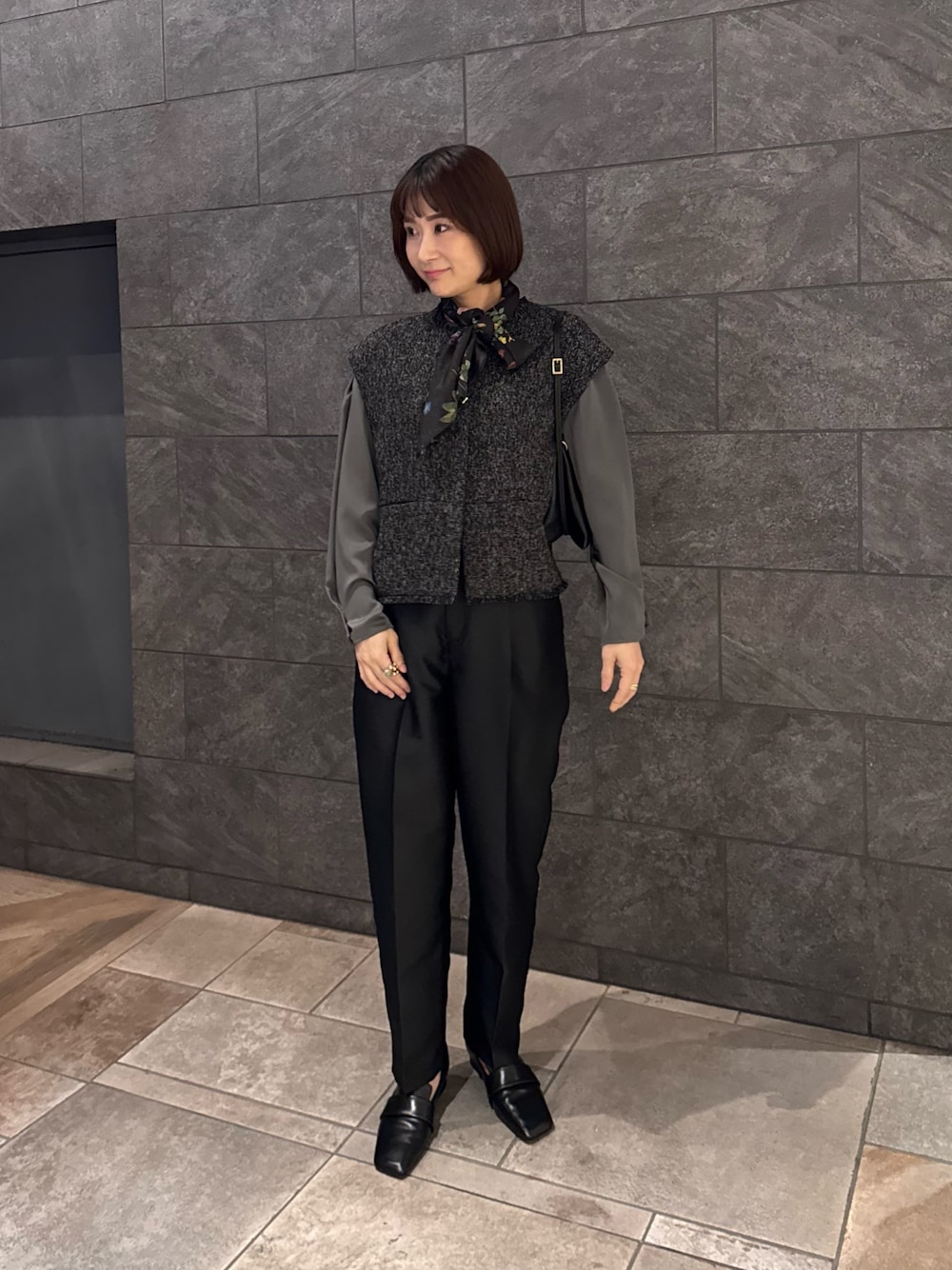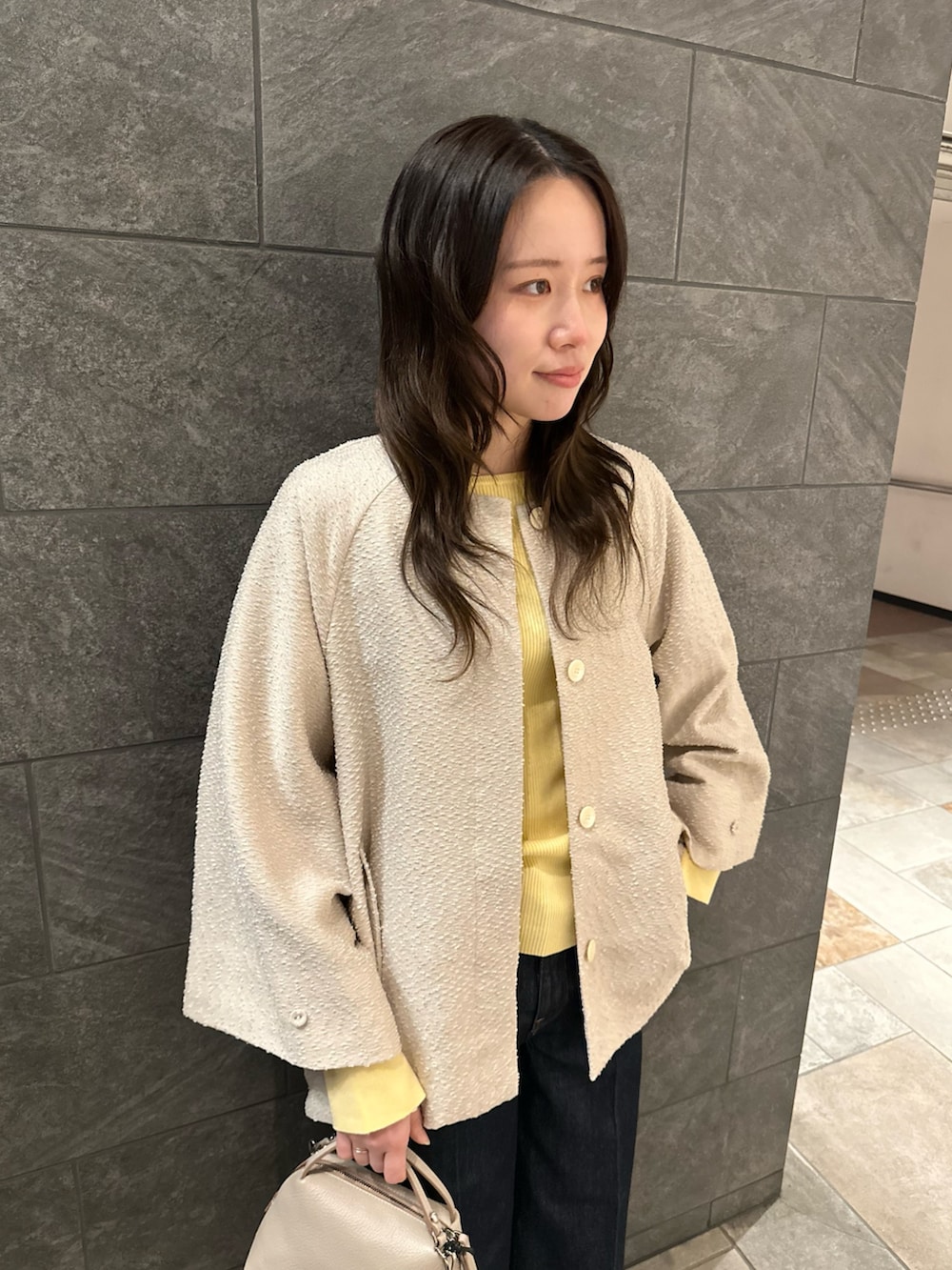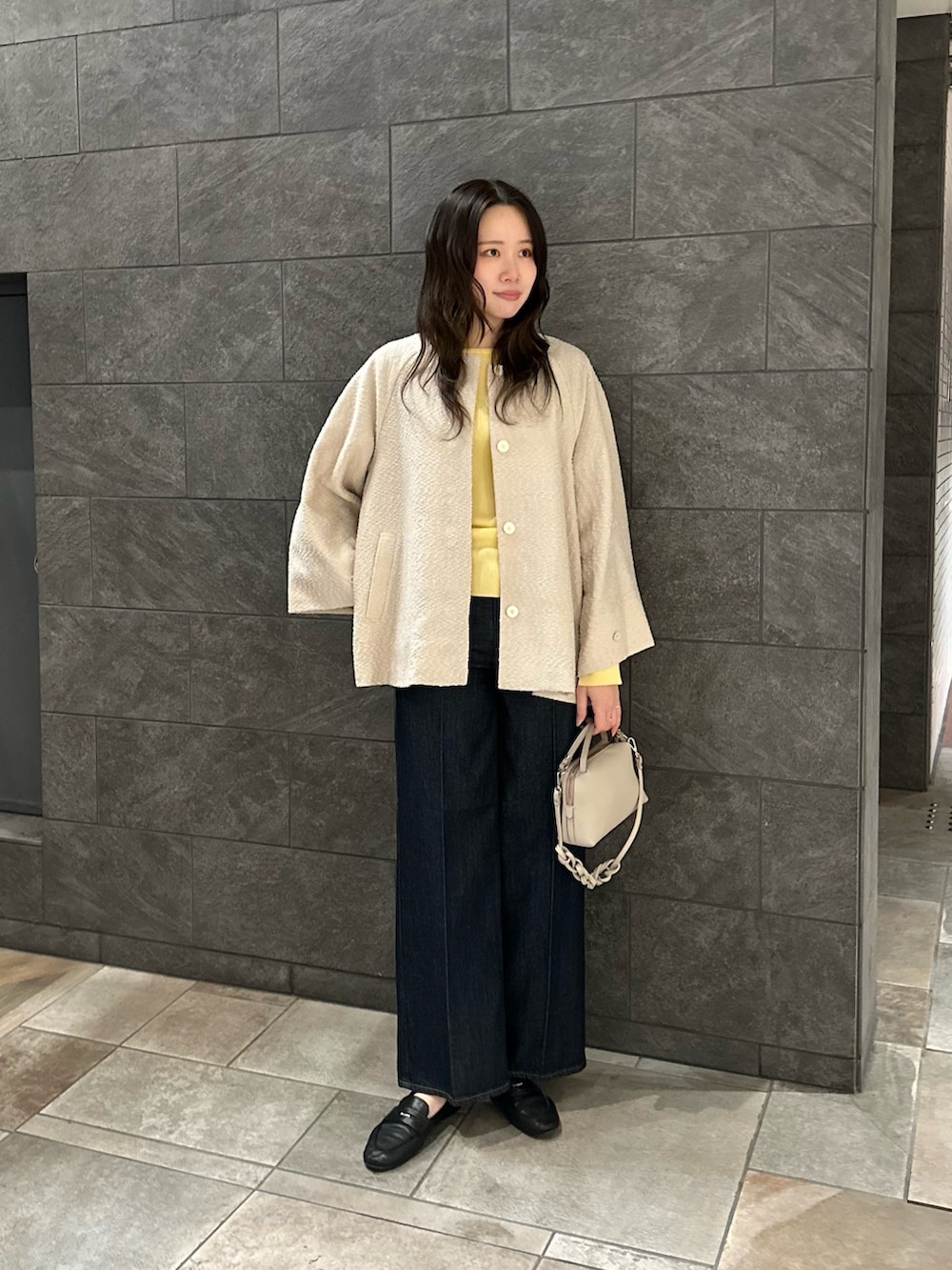 Aラインシルエットや凹凸のある表面感のネップツイードが大人の女性の着こなしに☑️