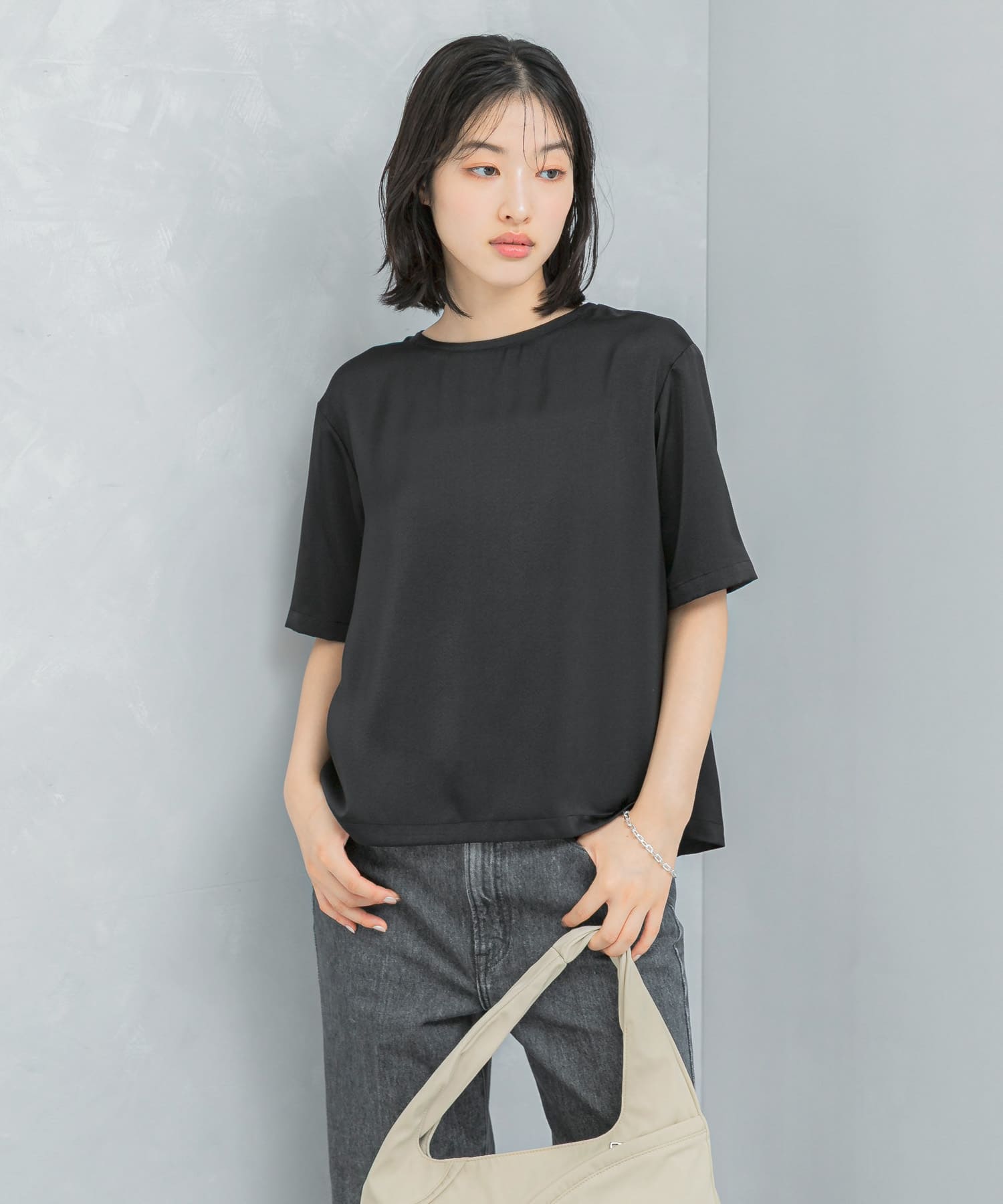 ROSSOUVカットサテンブラウス