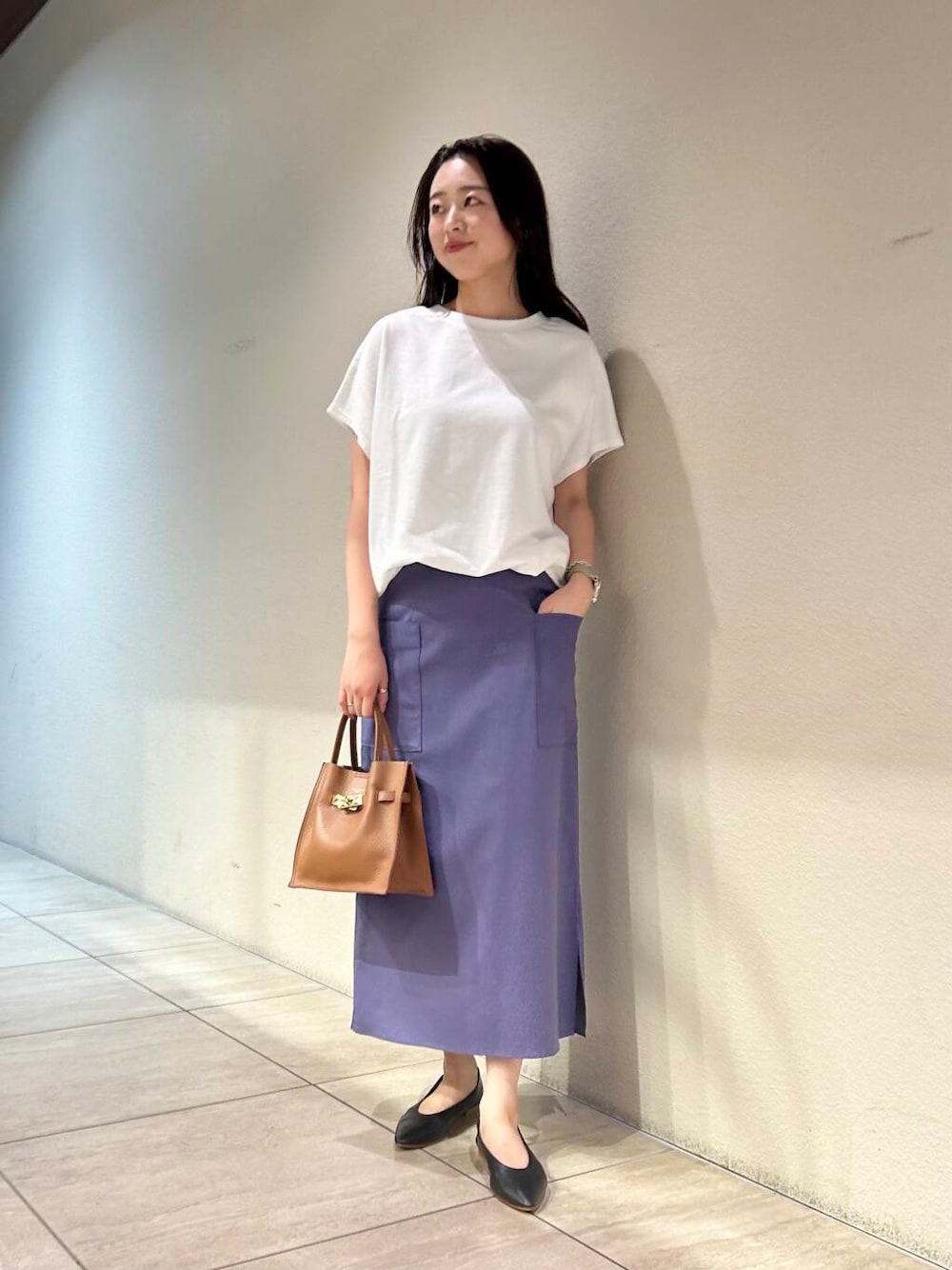 フレンチスリーブのスウェットなので、綺麗めなスカートと合わせるのもナチュラルに!