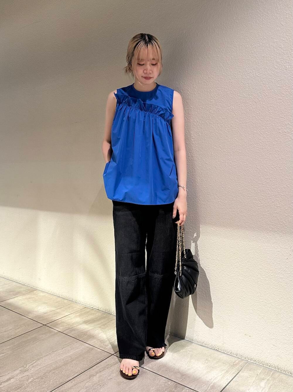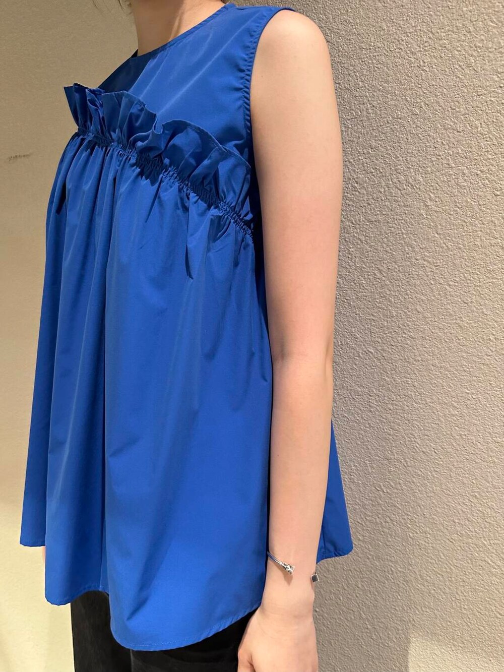 斜めに施したフリルギャザーがオシャレで可愛いブラウス🫐