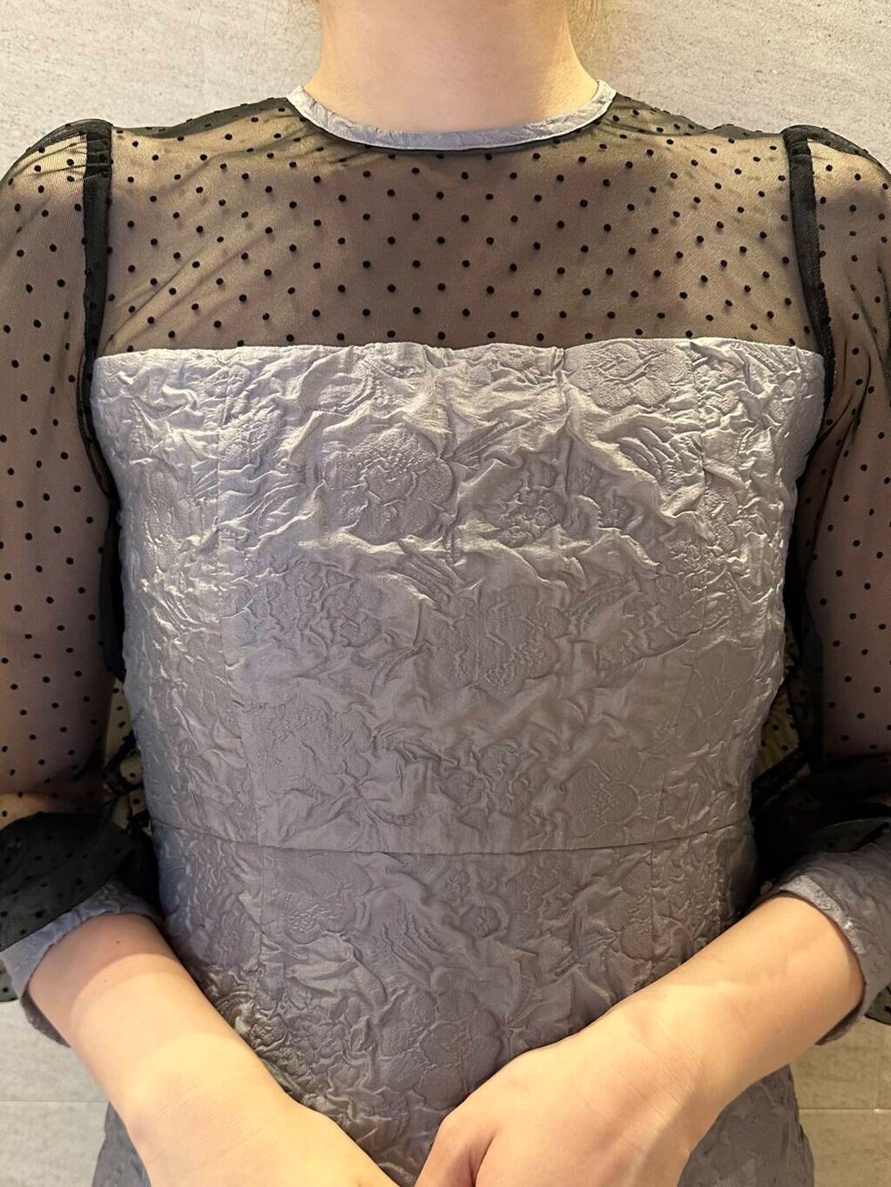 ドットや花のエンボス加工がグレーやネイビーでも華やかな印象に◎