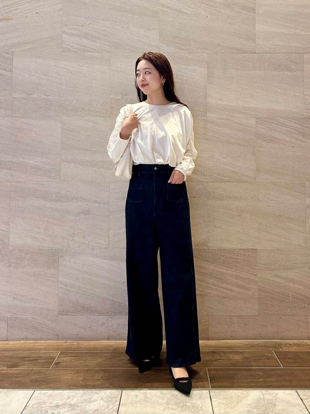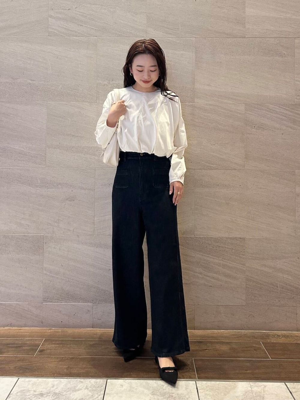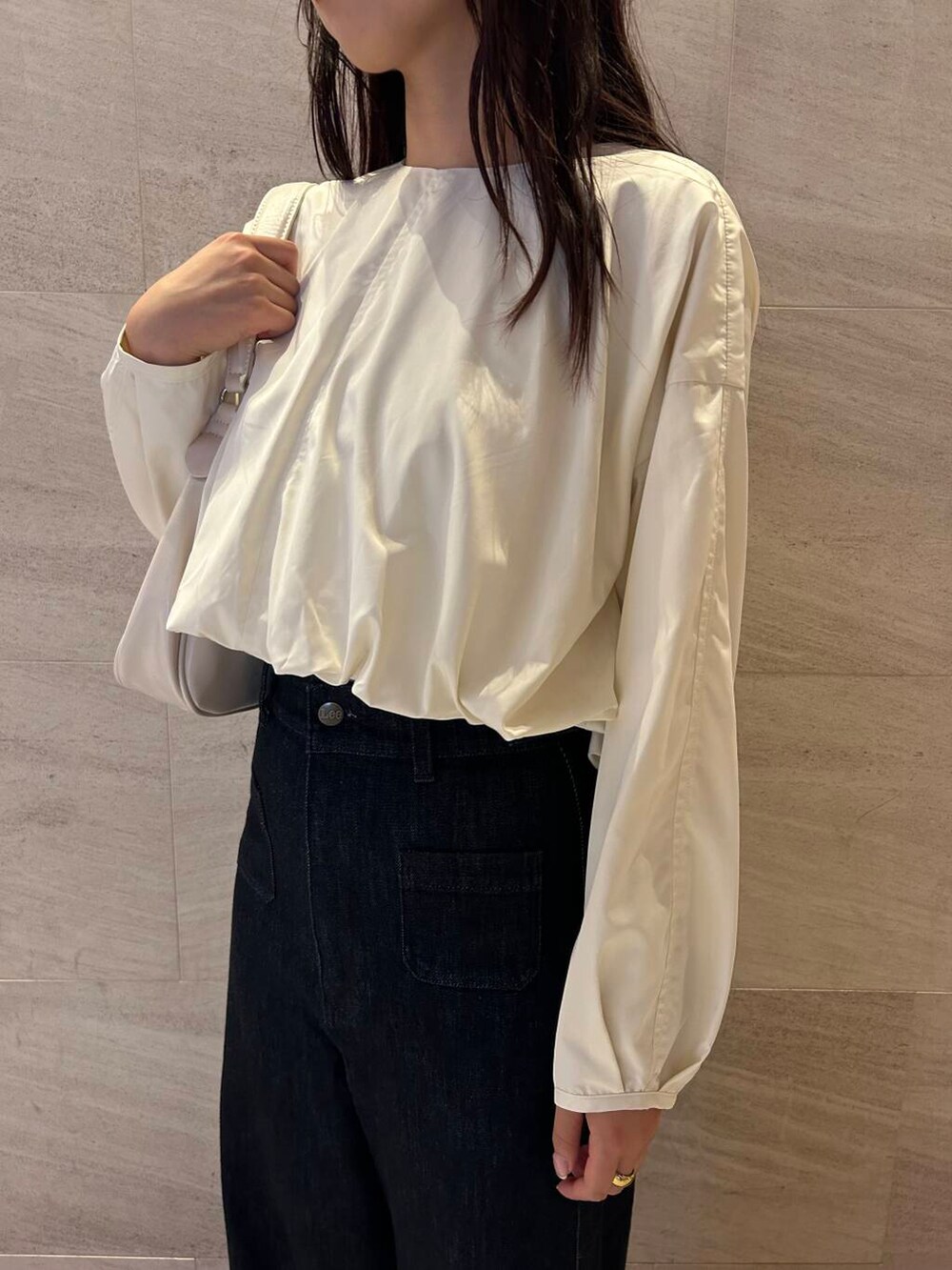 バルーンブラウスは丈が程よく短いので