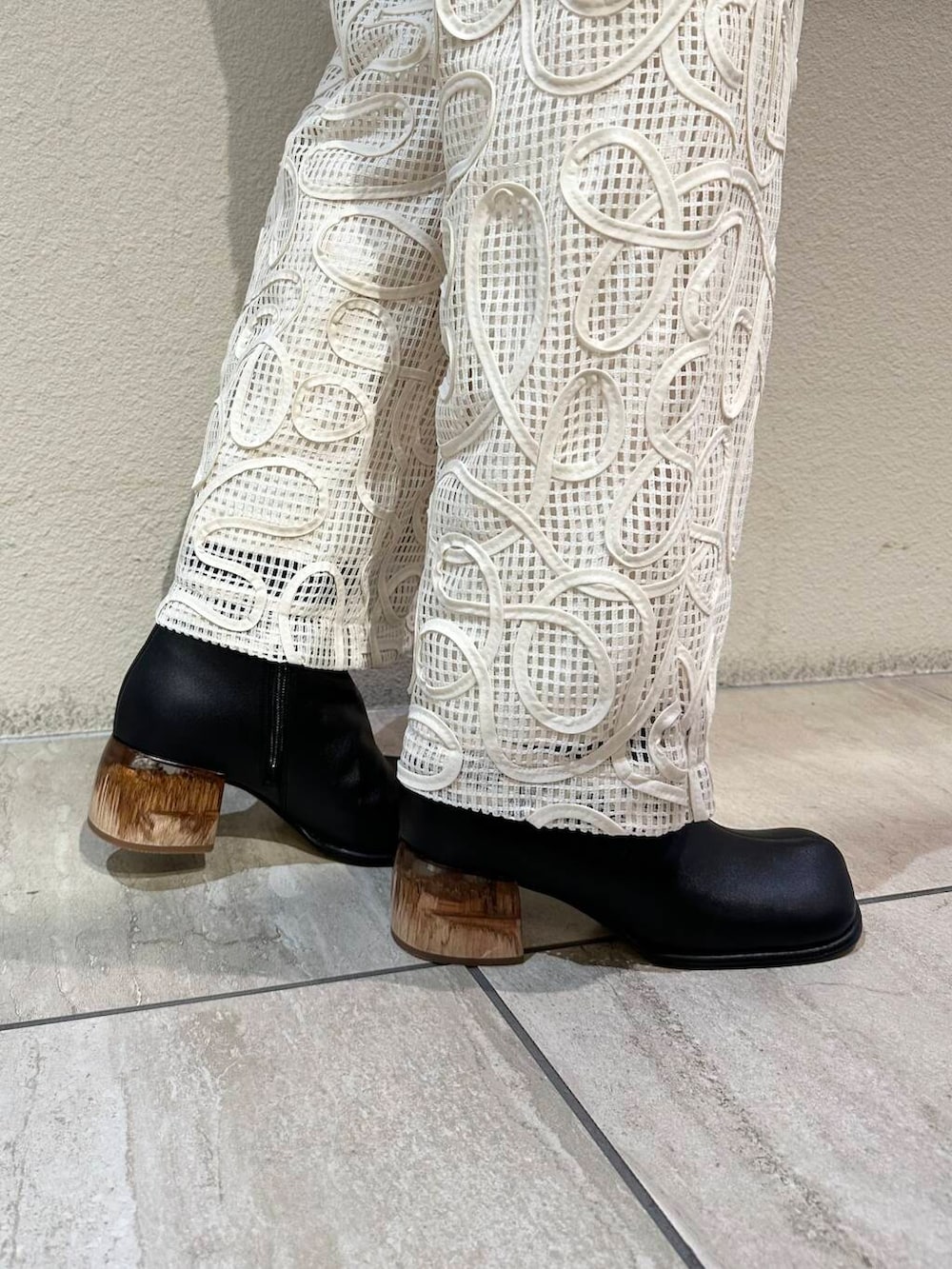 オリジナルのコードレースの柄が着るだけでお洒落見えするデザインパンツは今季オススメです☑️
