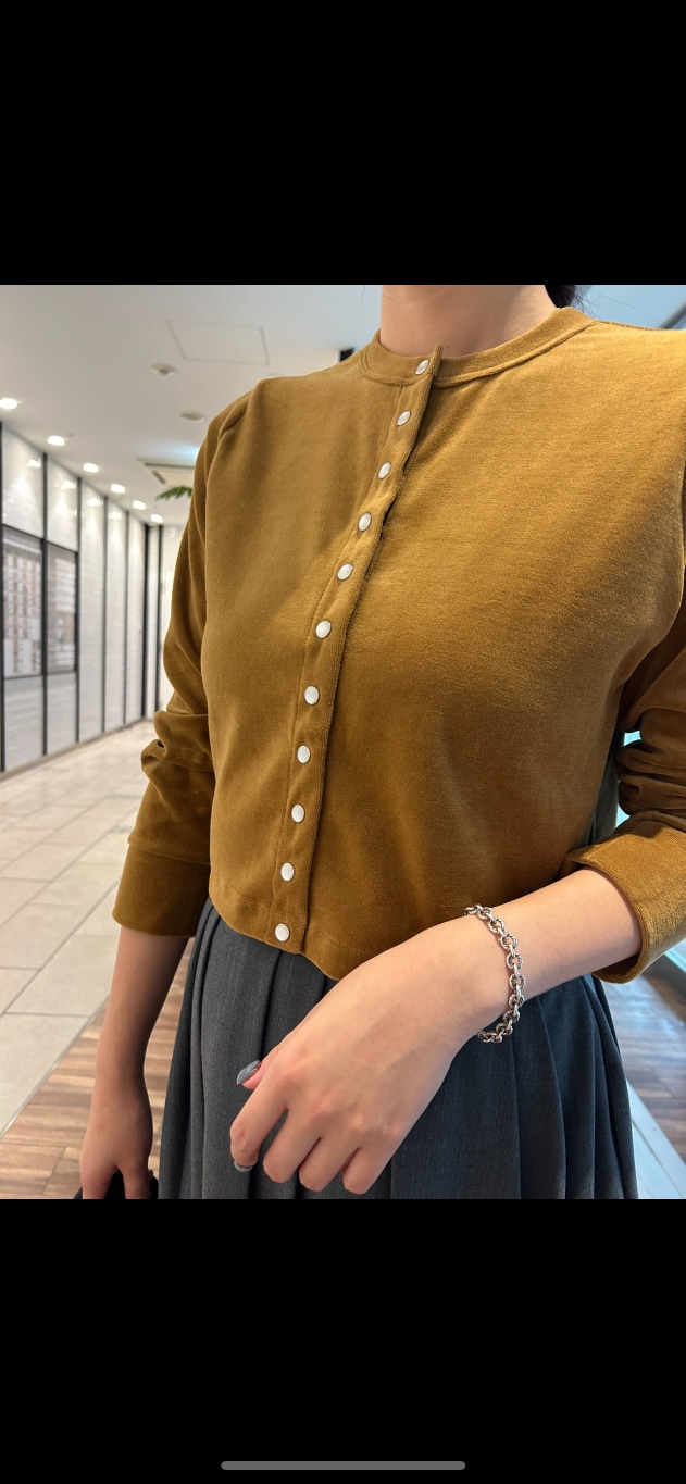 スナップボタンがたくさんついているトップスなので、シンプルコーデにもアクセント◎
