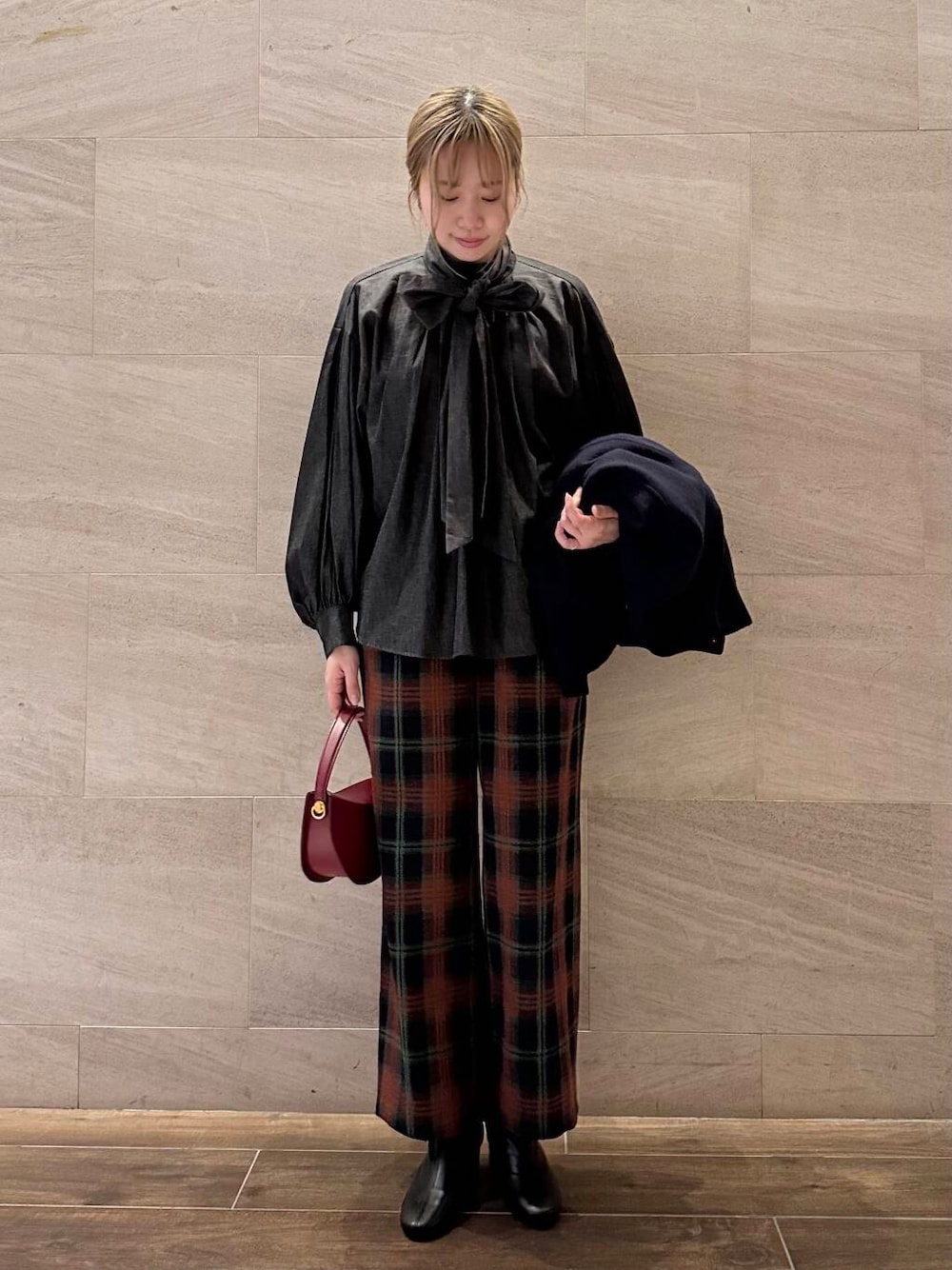 高見えするツイードパンツはややルーズなサイズ感でラインを拾わず楽な履き心地でした◎