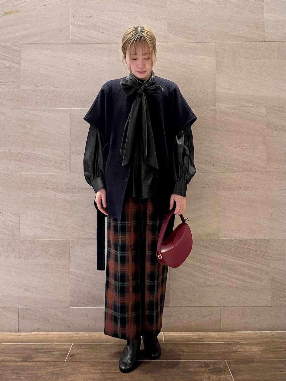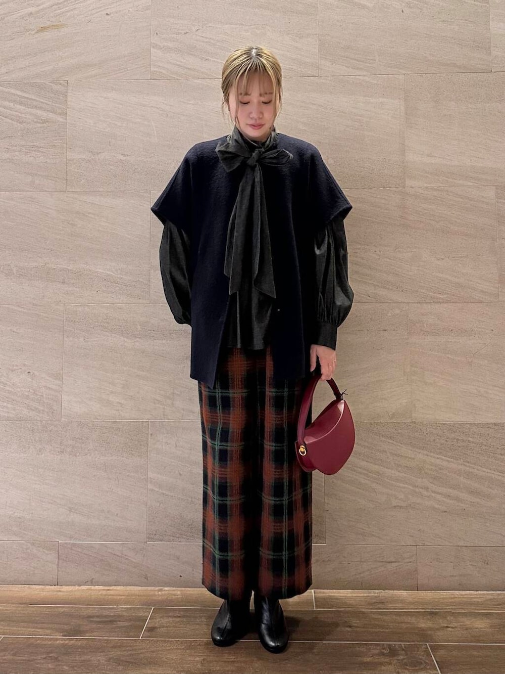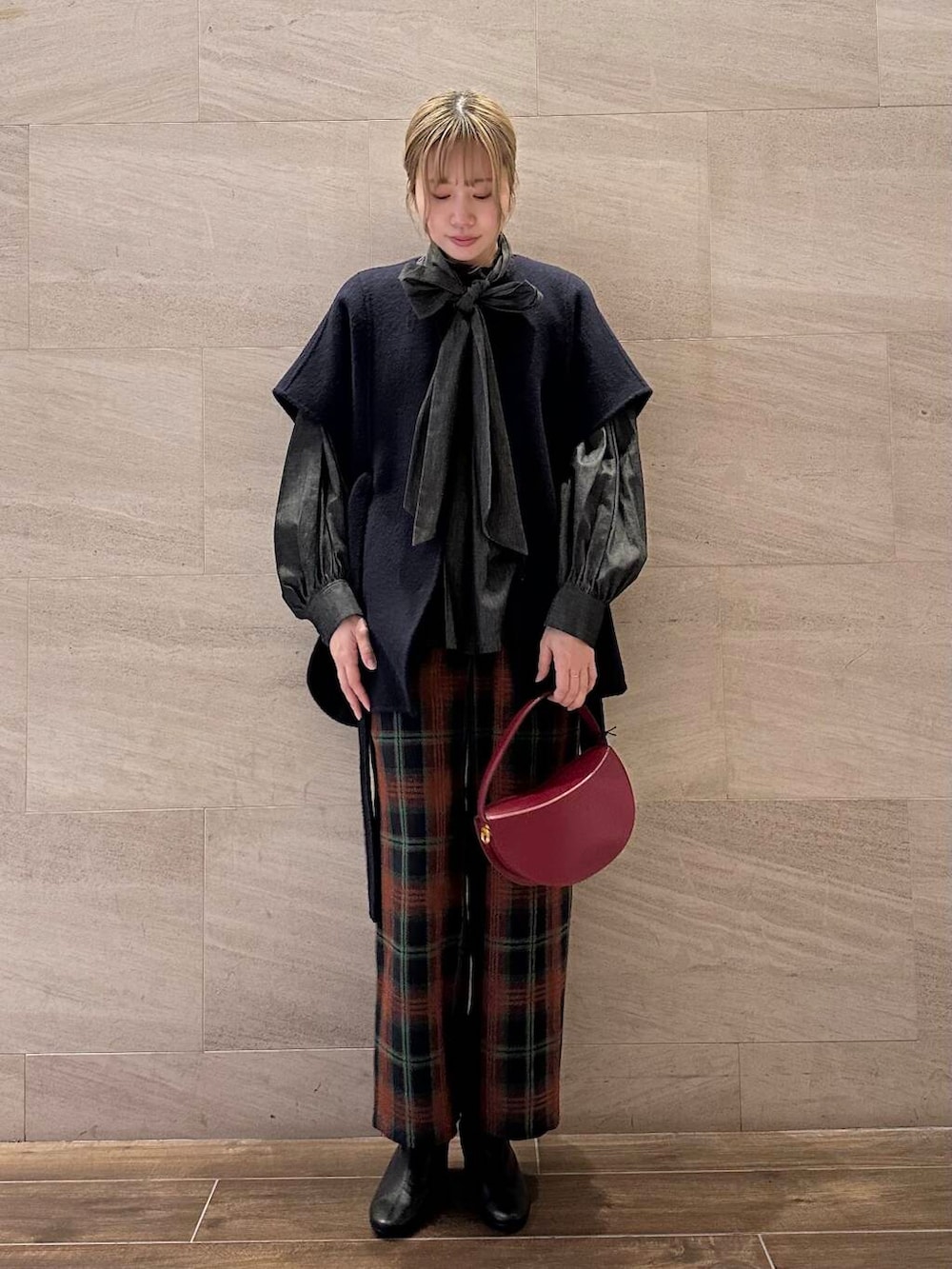 今回はポンチョコートを羽織って首元をリボンタイにして合わせてみました☑️