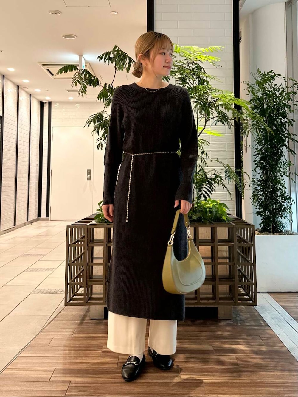 ROSSOヤク混サイドスリット畦ニットワンピース