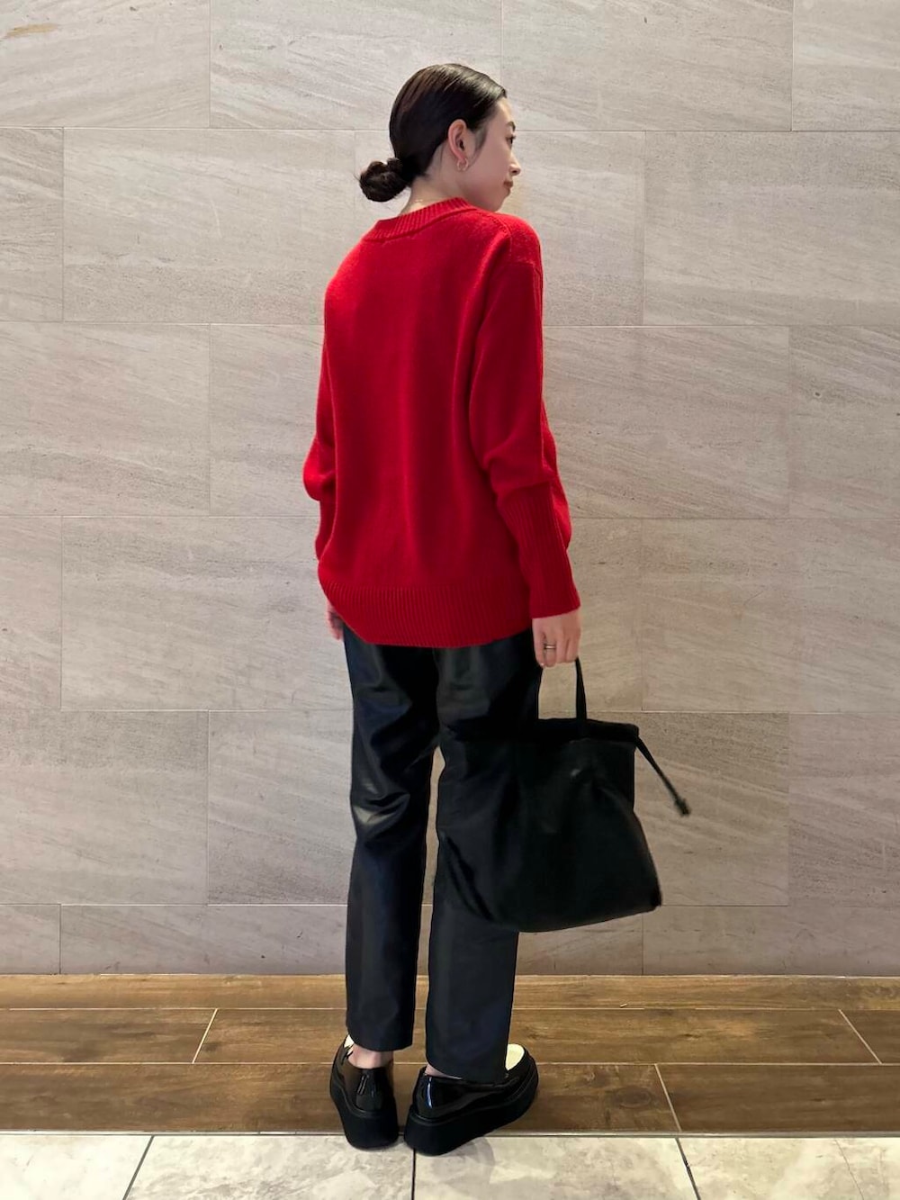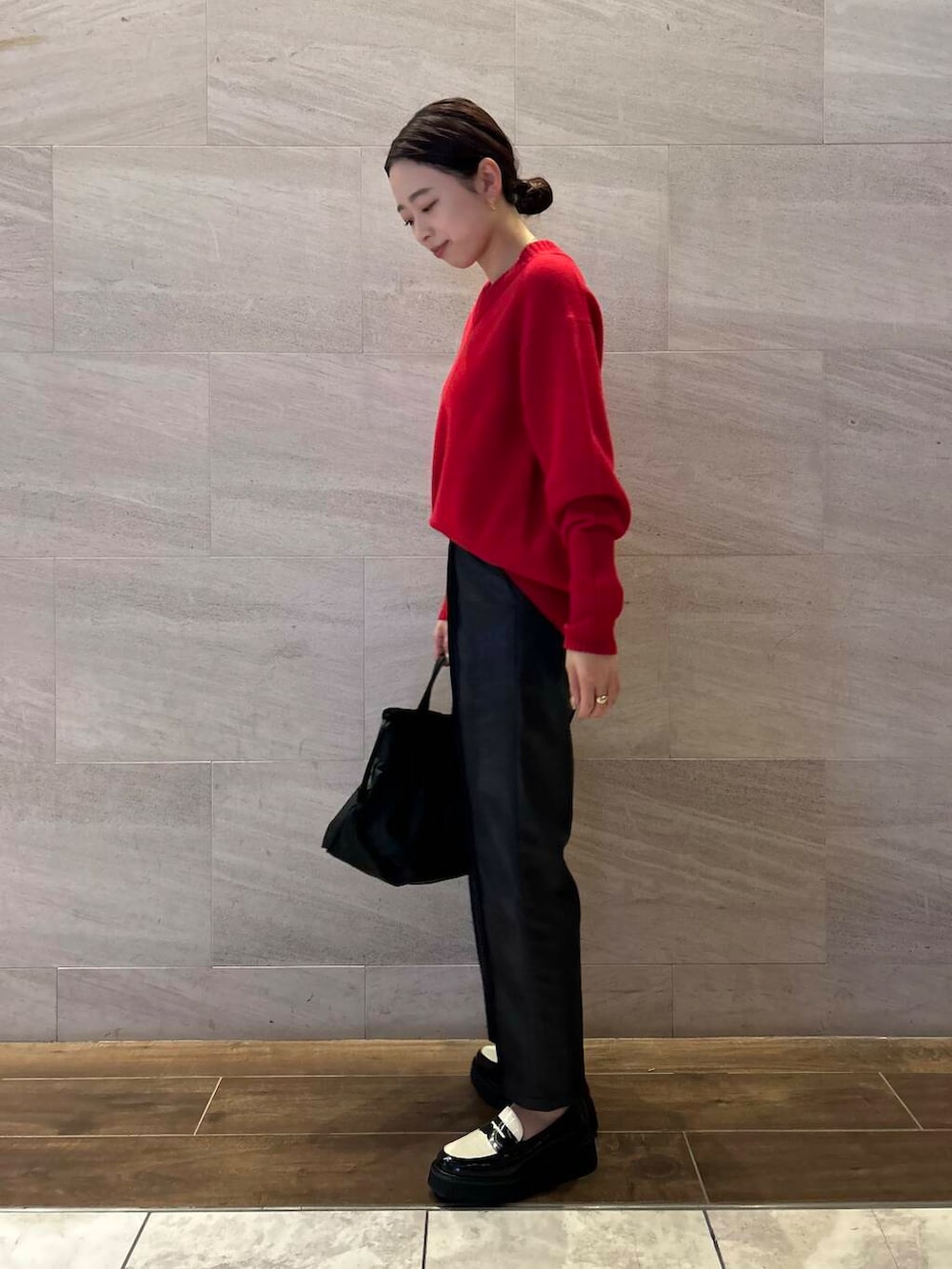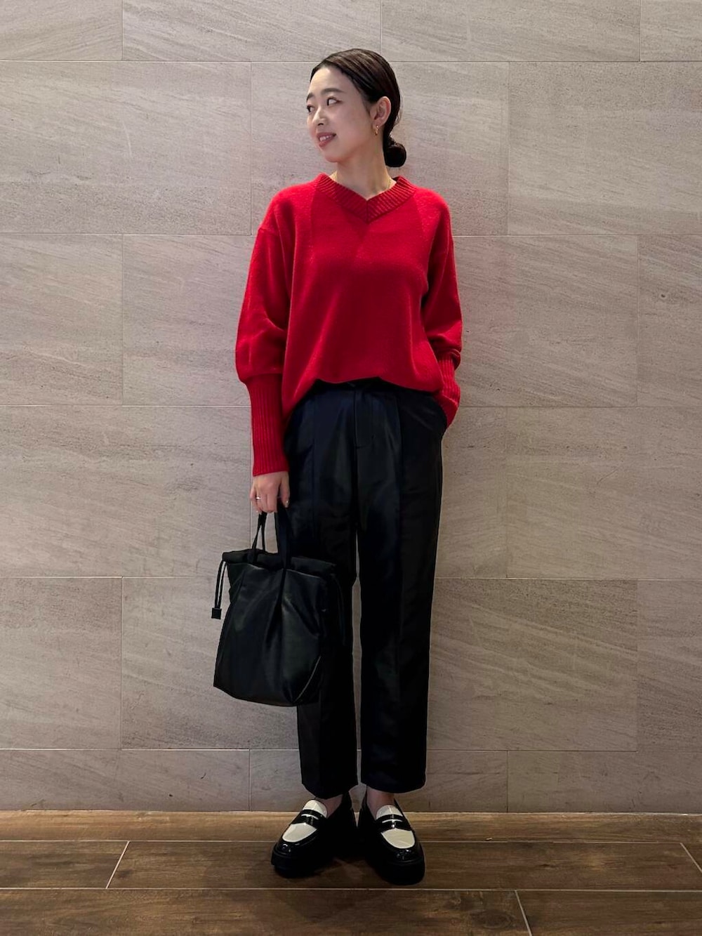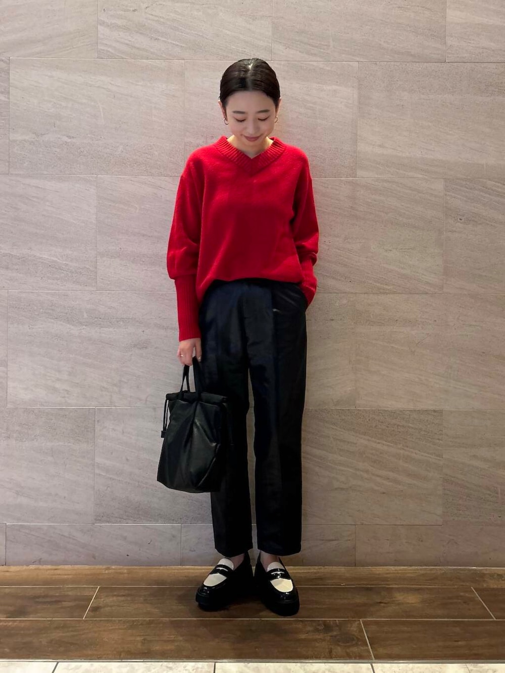 赤ニットが主役のコーディネート!