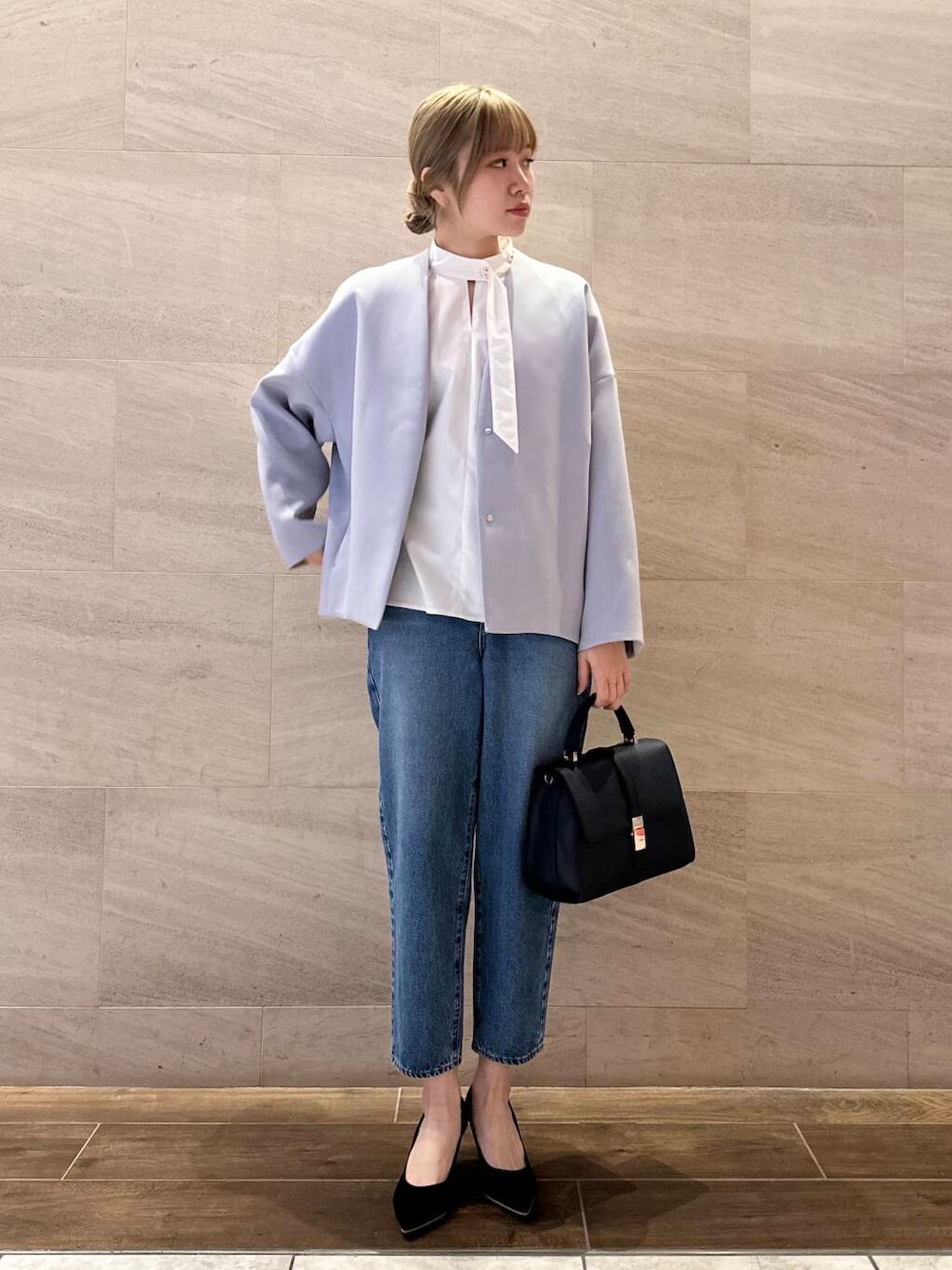 ややゆとりのある着心地ながらも綺麗めスタイリングが叶うショートコート◎
