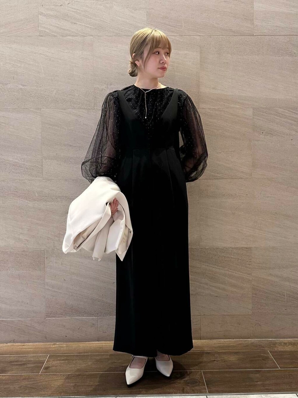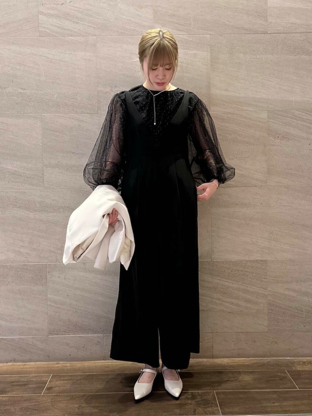 今回は食事会や同窓会などのシーンをイメージしてオールインワン×ブラウスコーデに合わせてみました💡