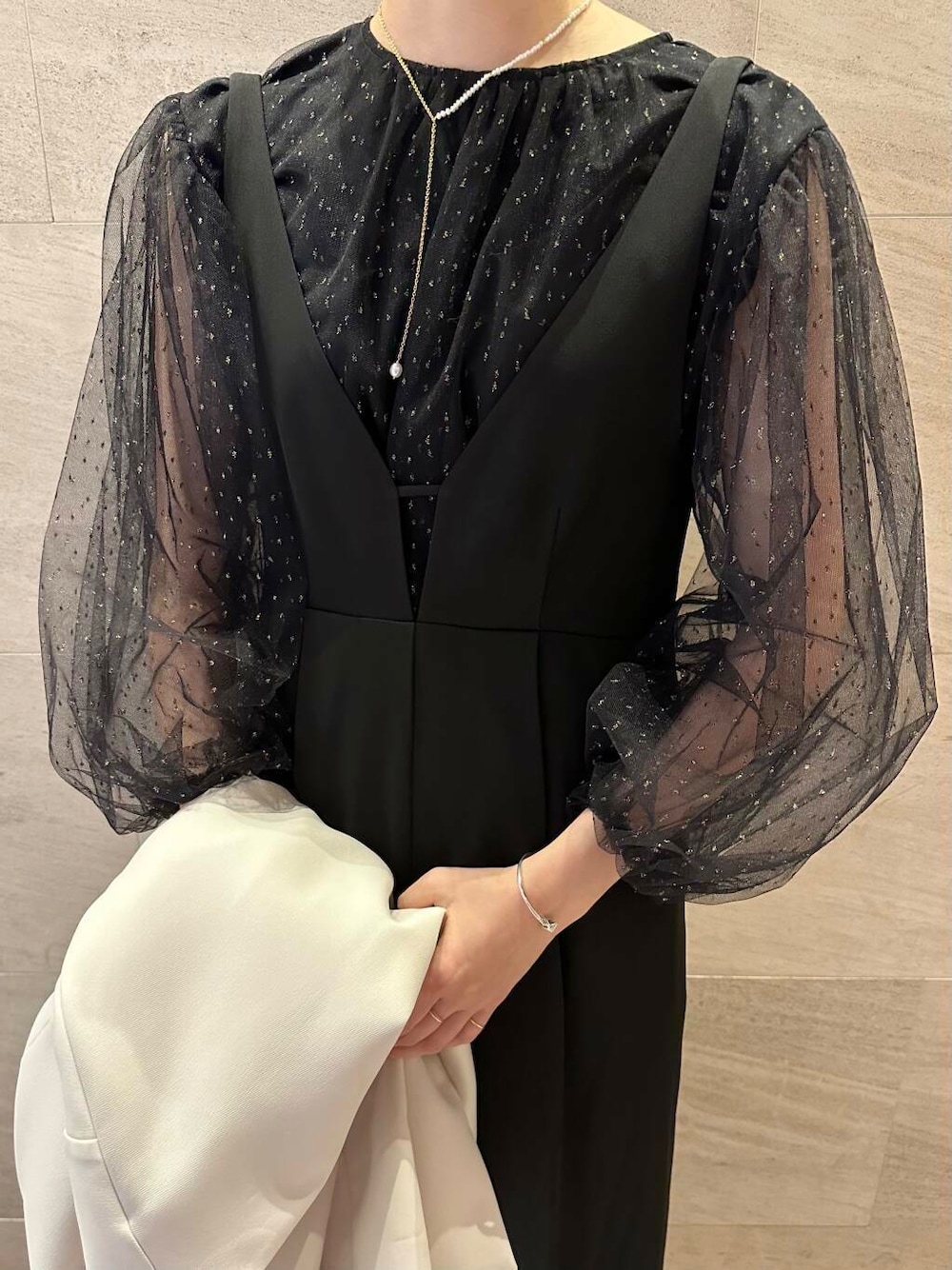 トップスはお袖のみ透けているのでインナーにも悩まず着ていただけます◎