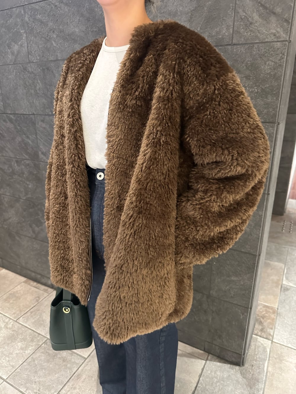 『WEB限定』ノーカラーファーボアZIPブルゾン