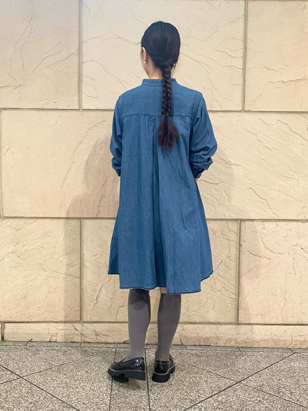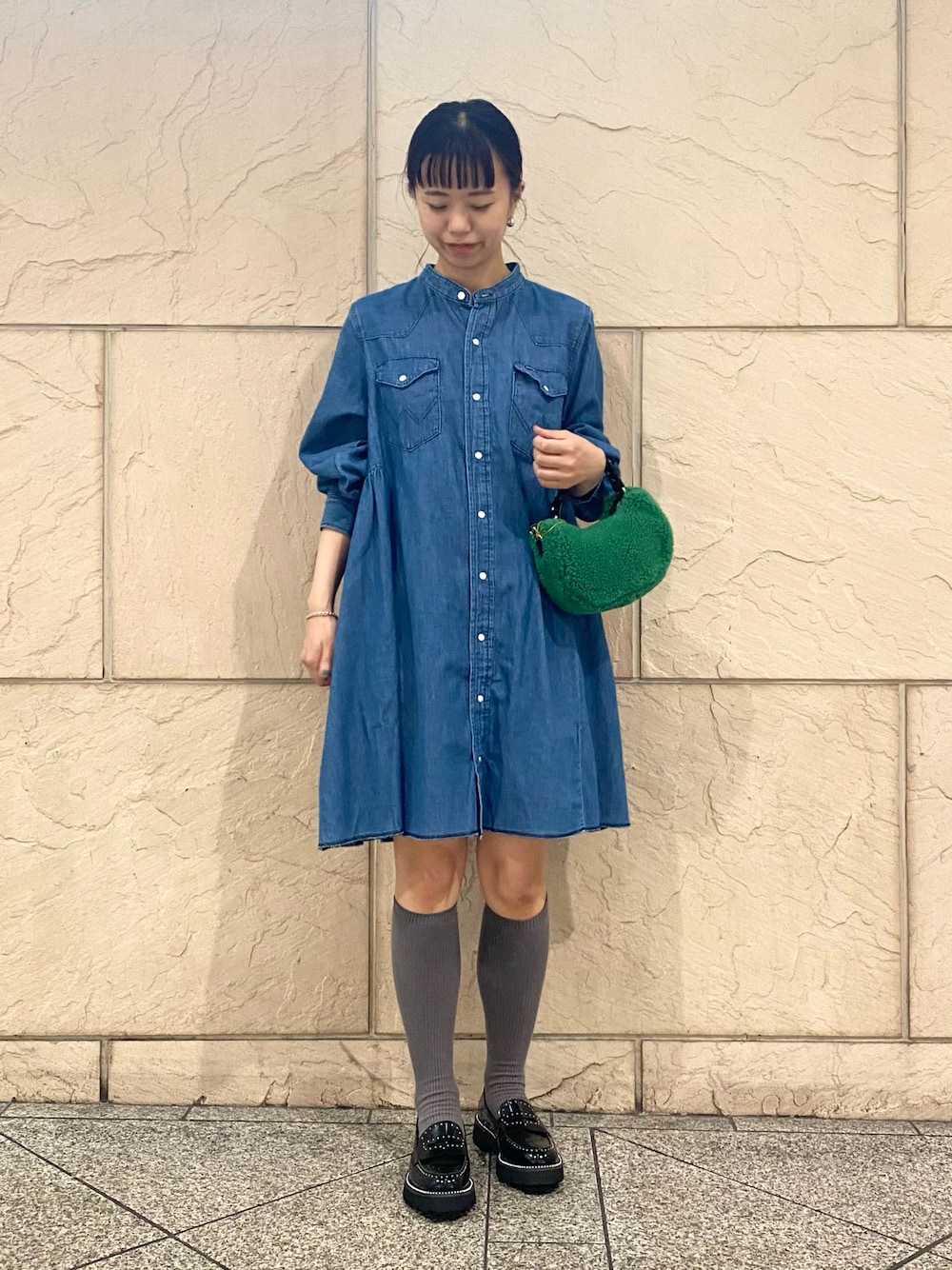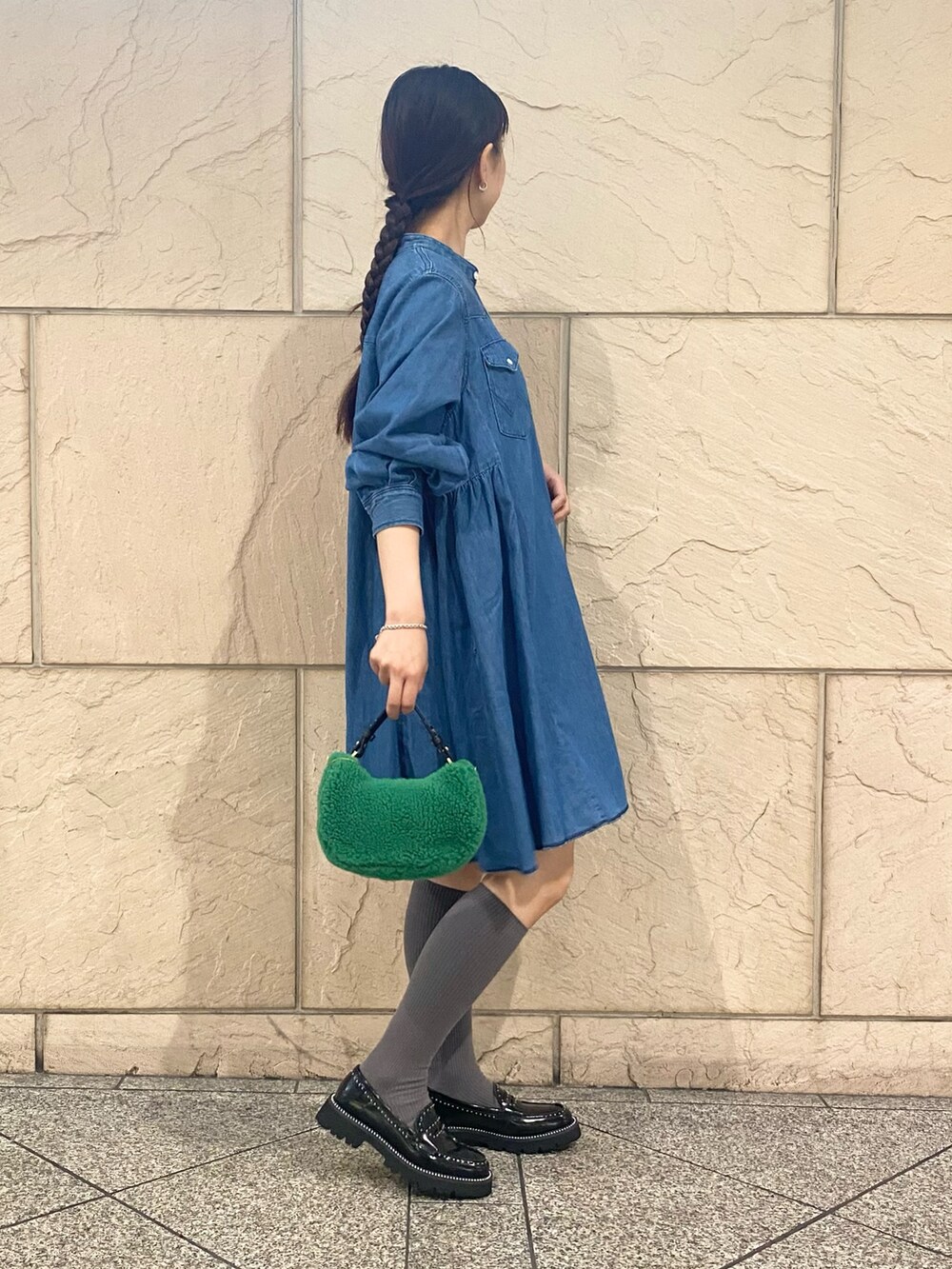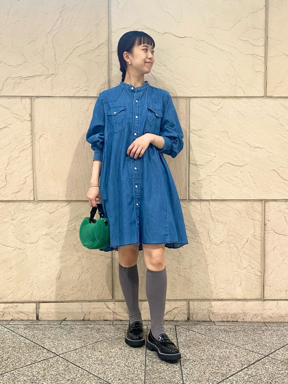 ミニ丈のデニムワンピにグレーのハイソックス合わせで🐘