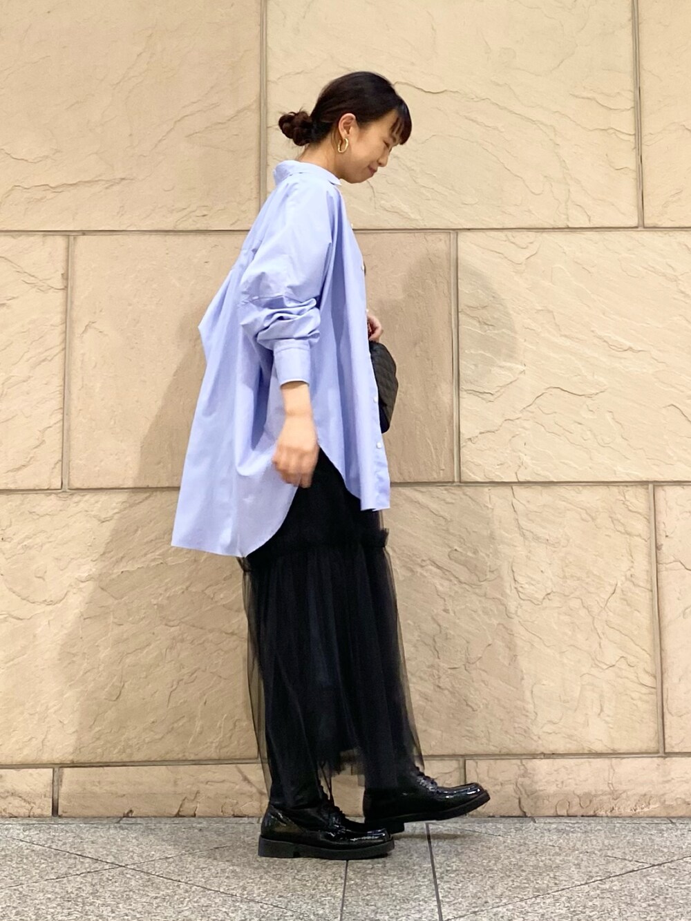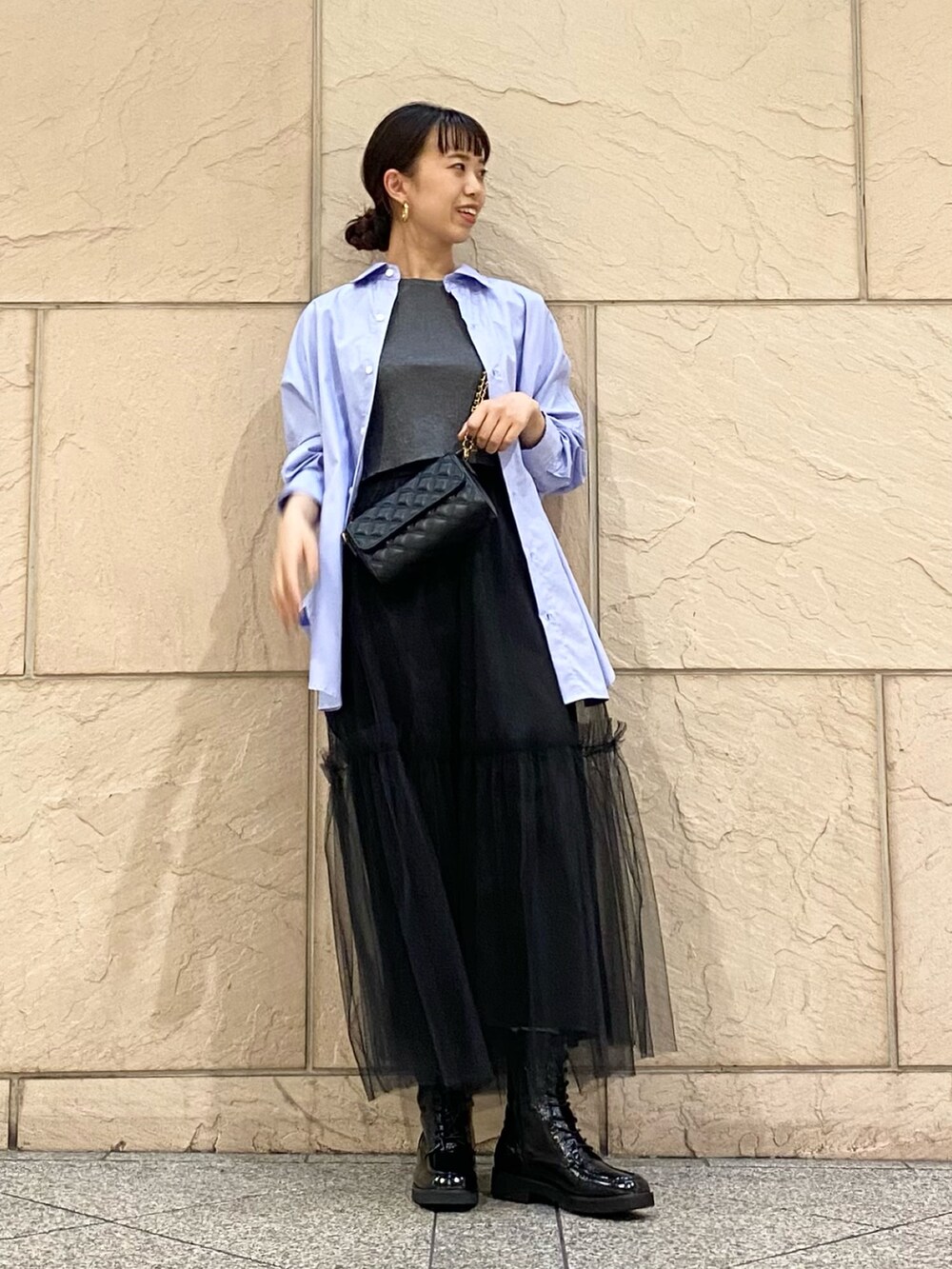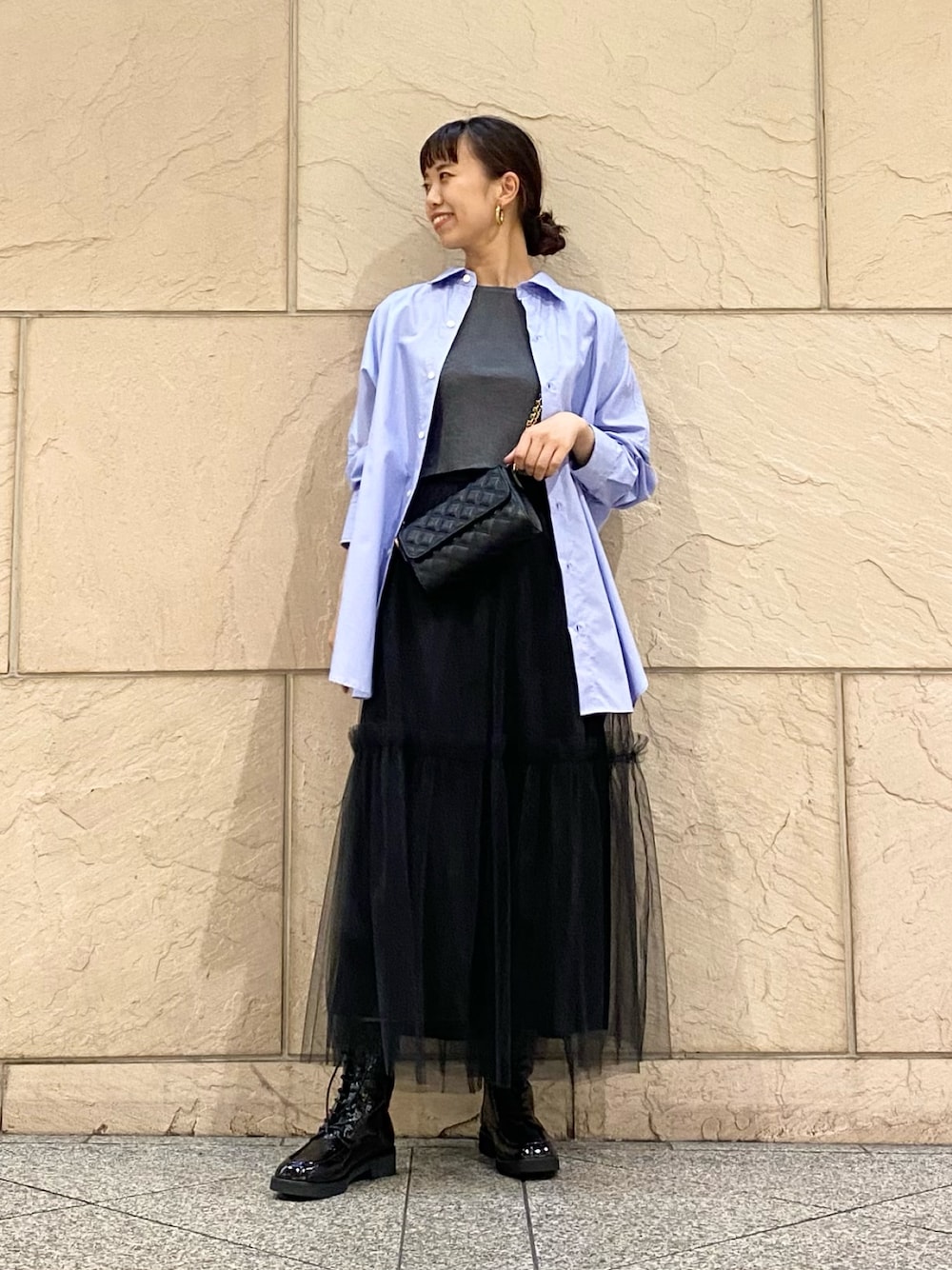 チュールスカート×クロップドトップスでバランス良く着こなしました。