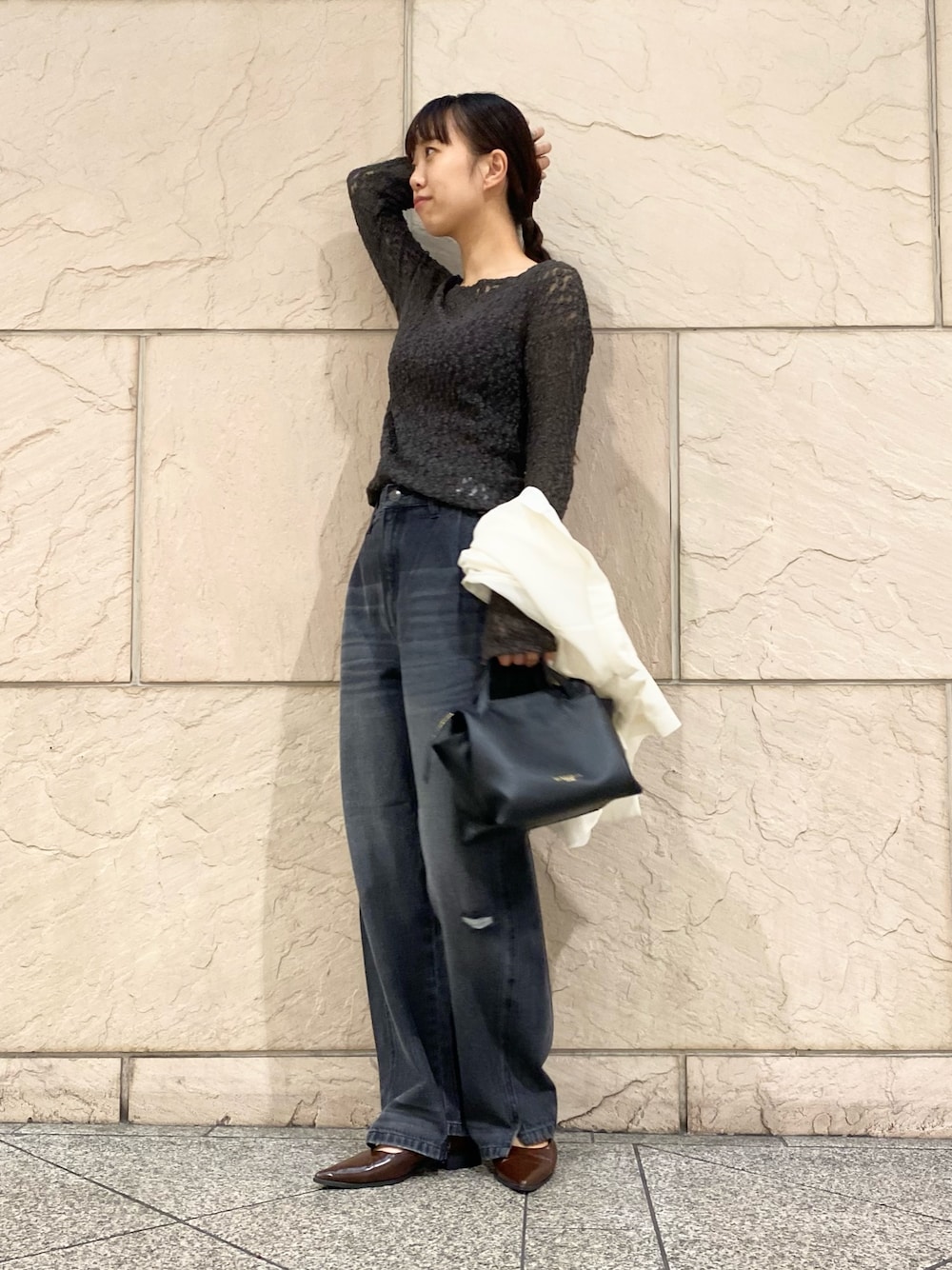 トップスは透け感のあるレースを取り入れて少しの女っぽさをプラス💄