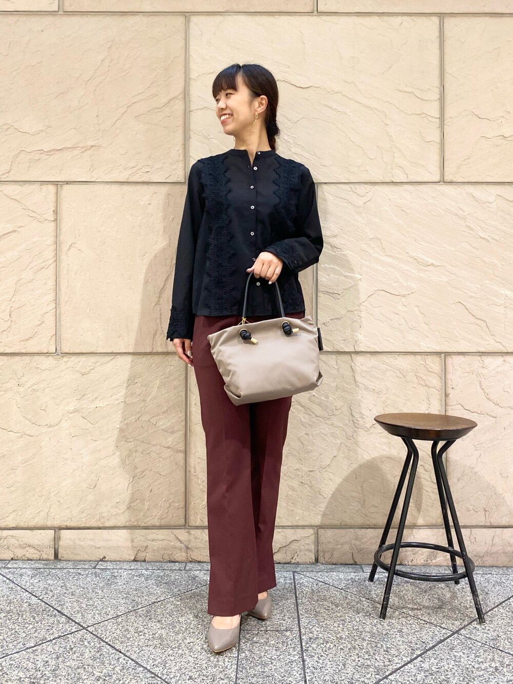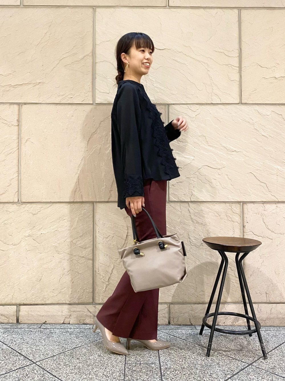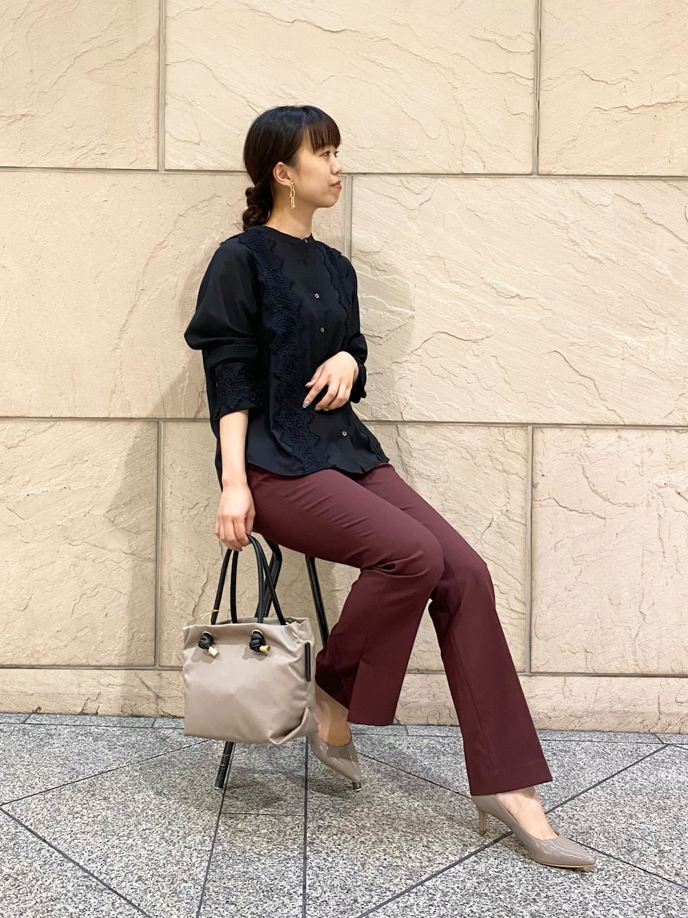 レースブラウスを使ったハンサムオフィスカジュアルコーデ✴︎