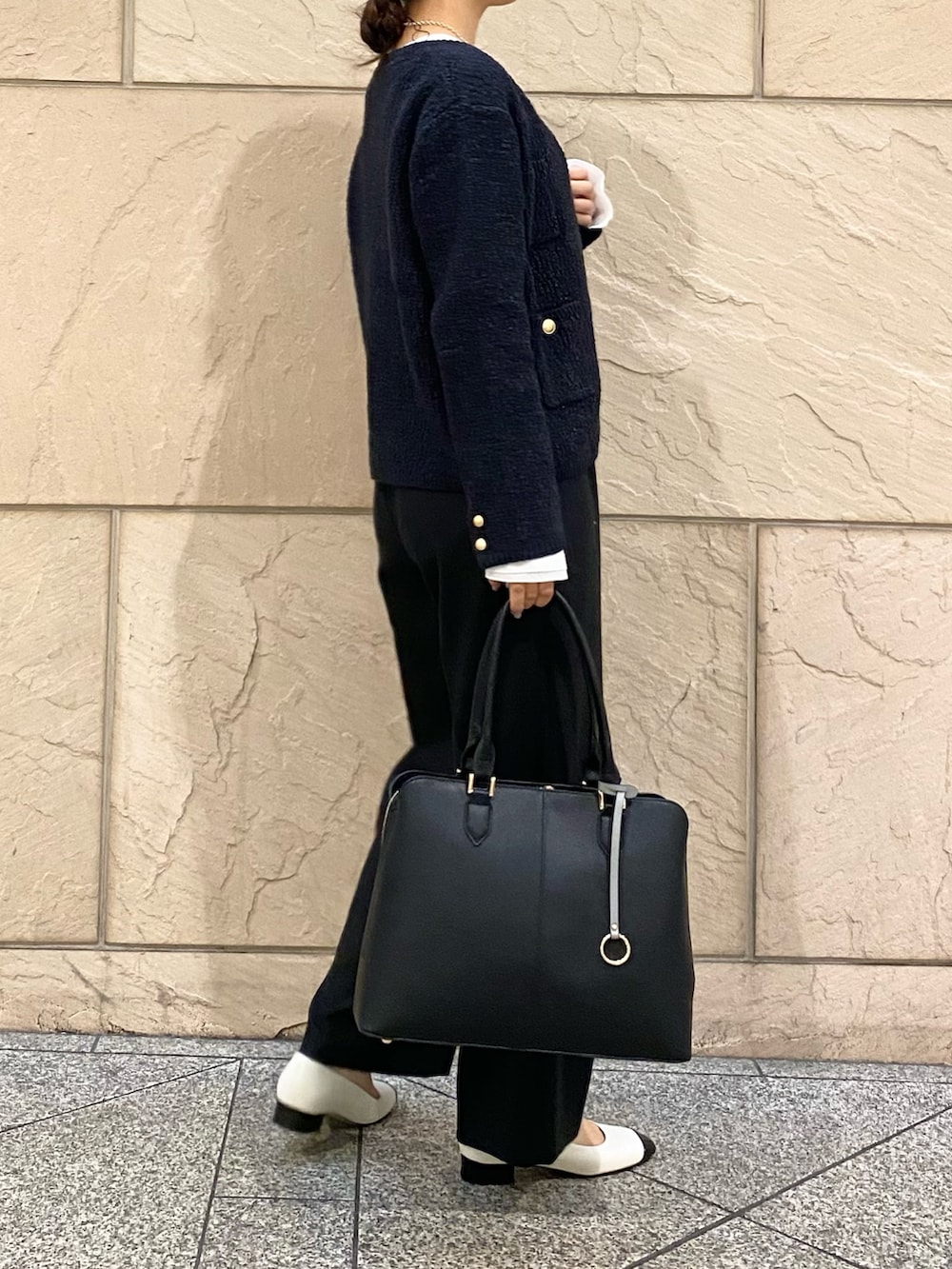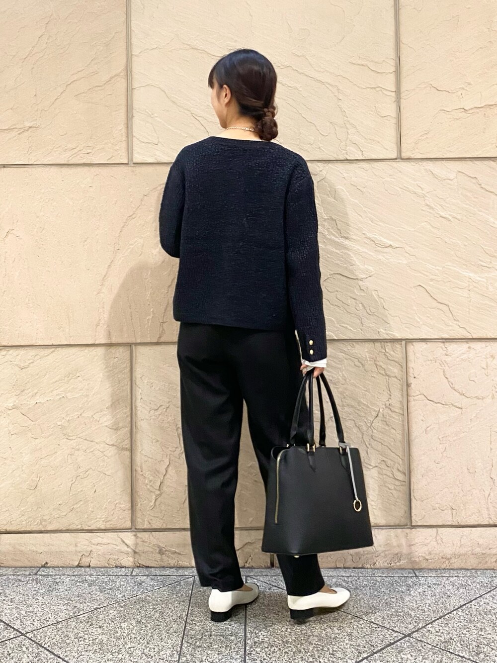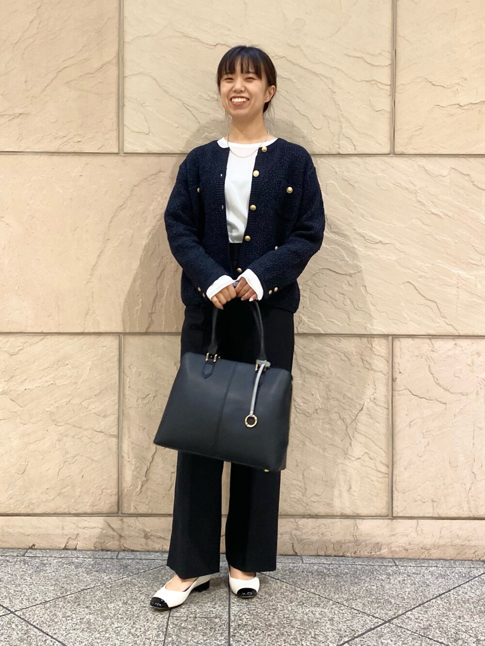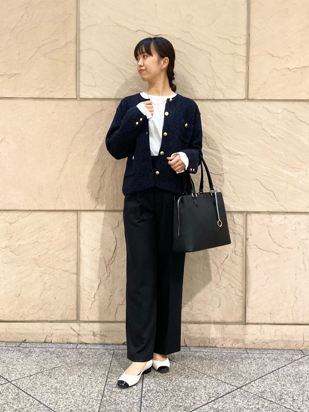 ツイードカーデにブラウスを合わせるだけできちんと見えします◎