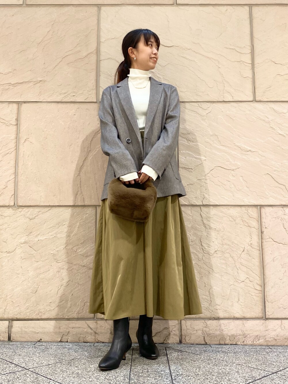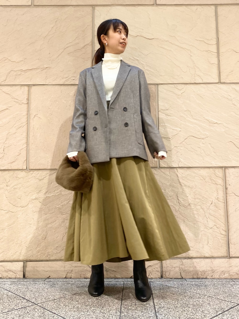 秋らしいゴールドのスカートと合わせてコーディネートしました🍂