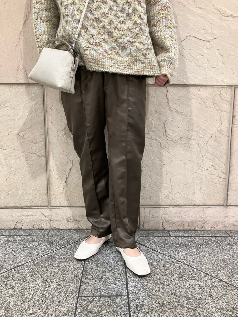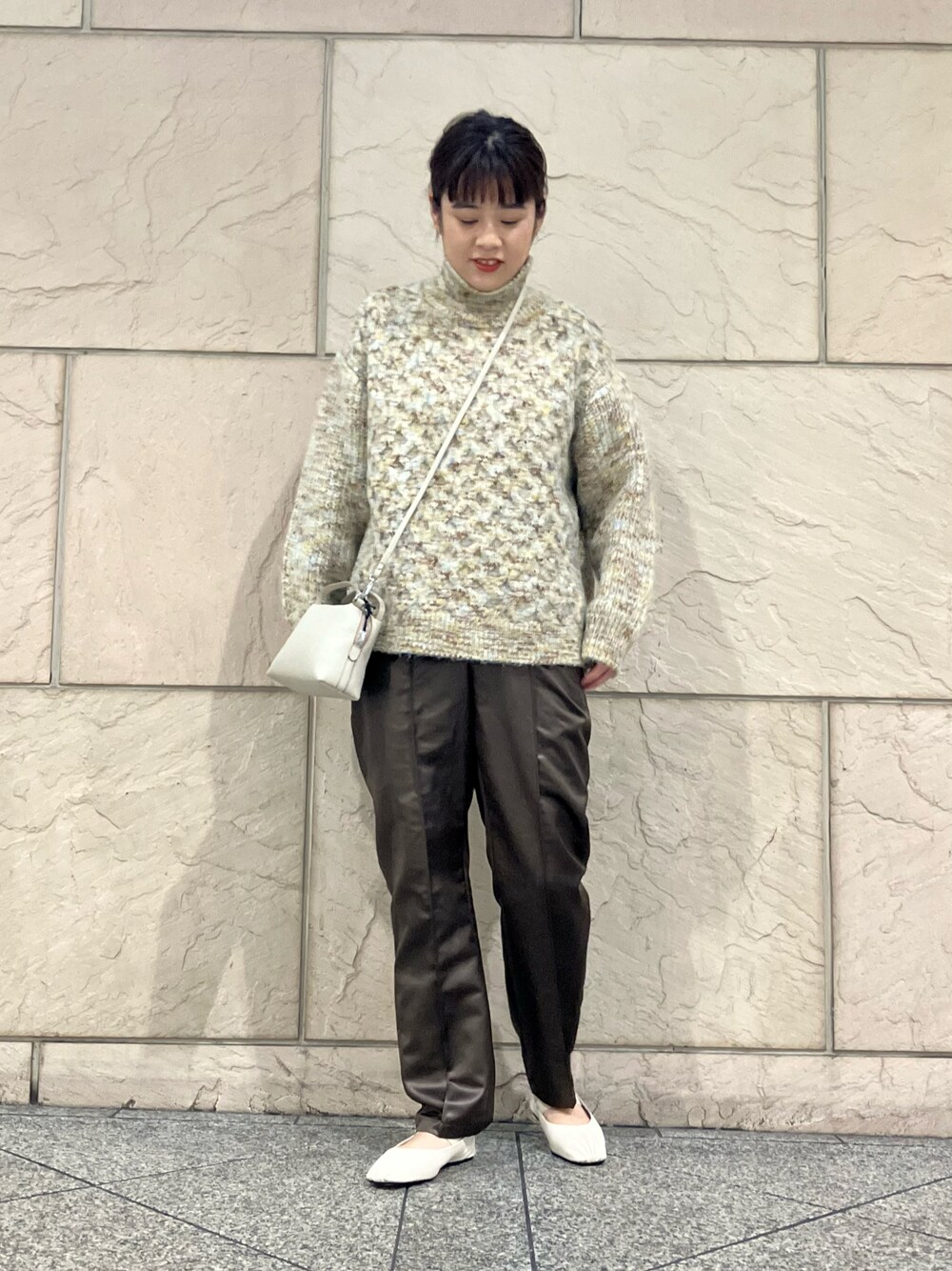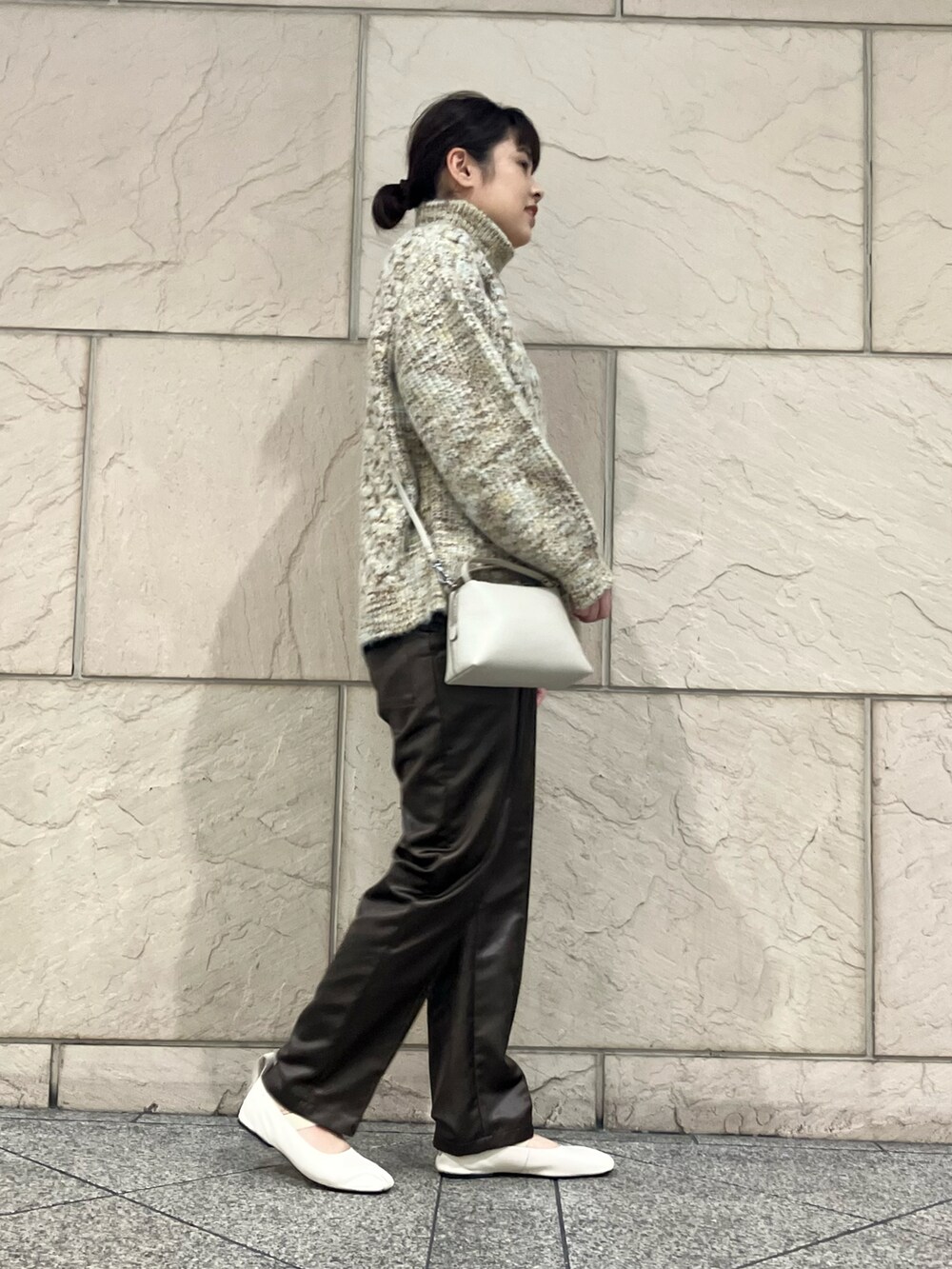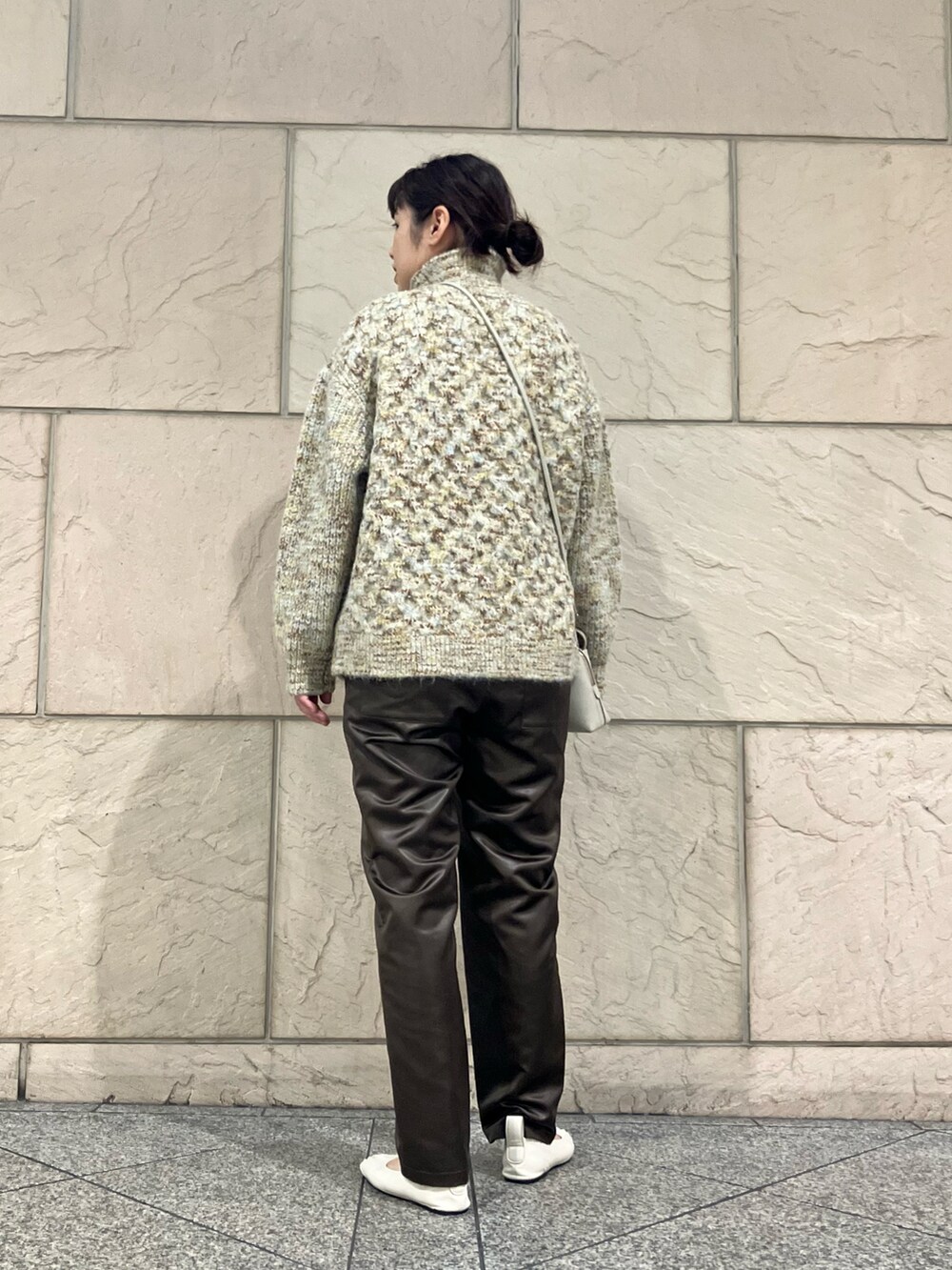 ニットはミックスカラーや編み地がとても可愛く在感抜群な1着です。ボトムは個人的におすすめなレザーライクパンツを着用しました!