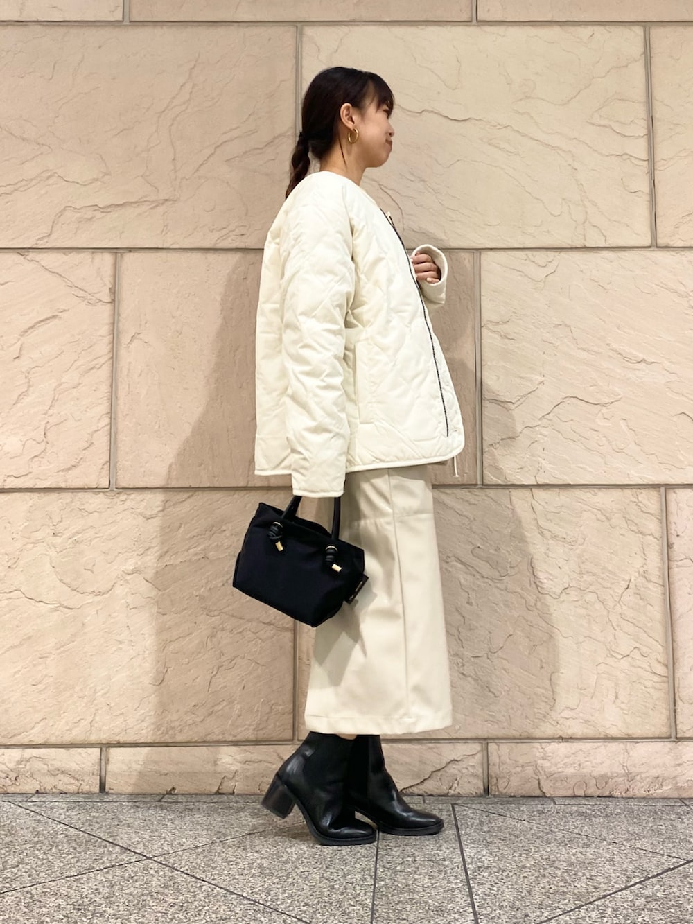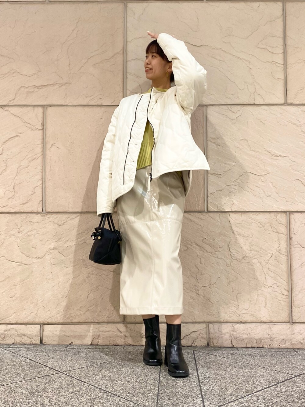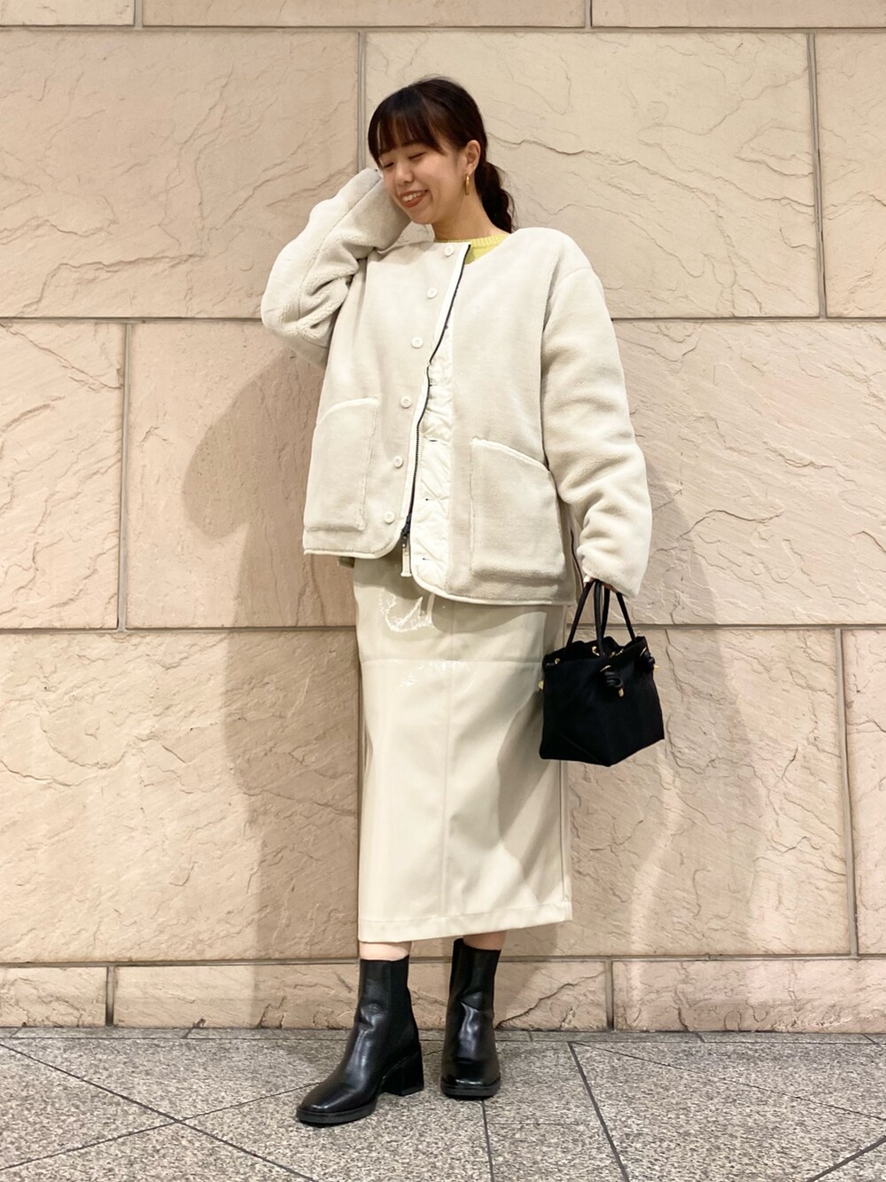 キレイめスカートと合わせるならサイドのファスナーを開けて、スッキリ着るのがおすすめです☺︎