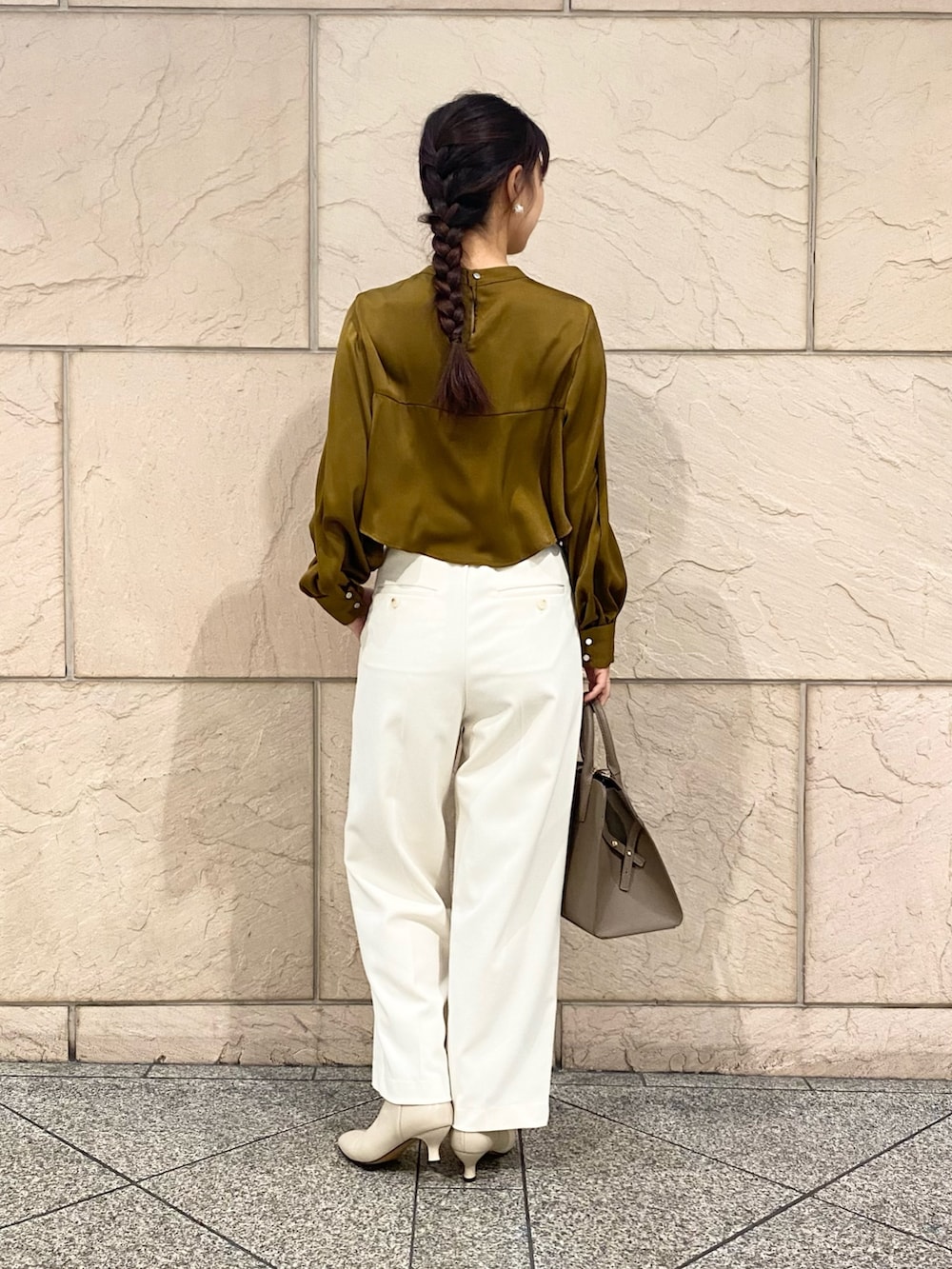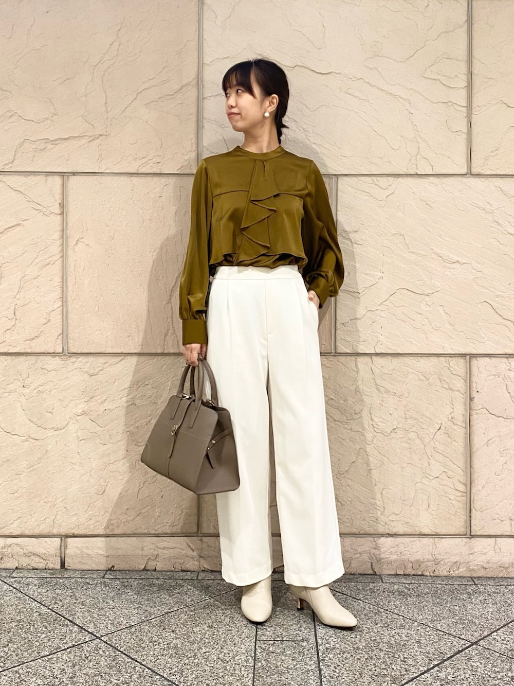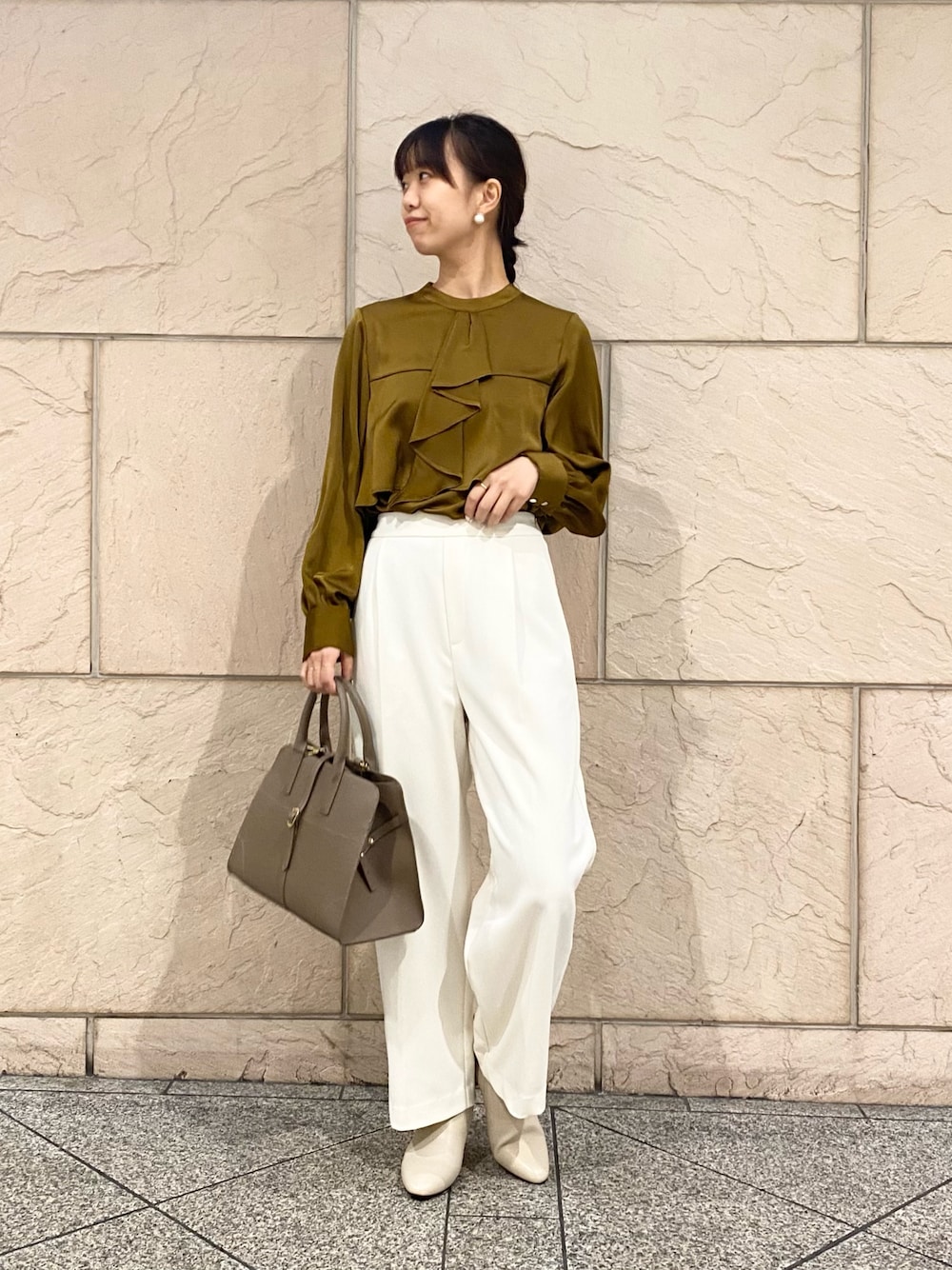 実はこちらのブラウスでした!首元がチラリと見えるだけでも