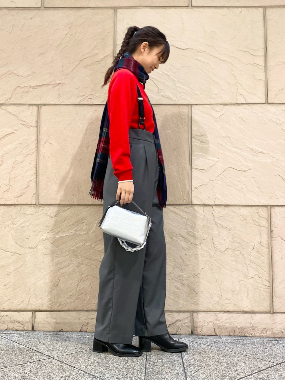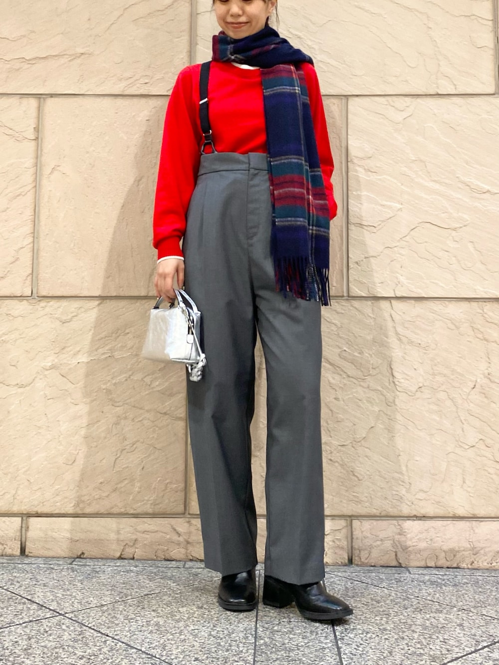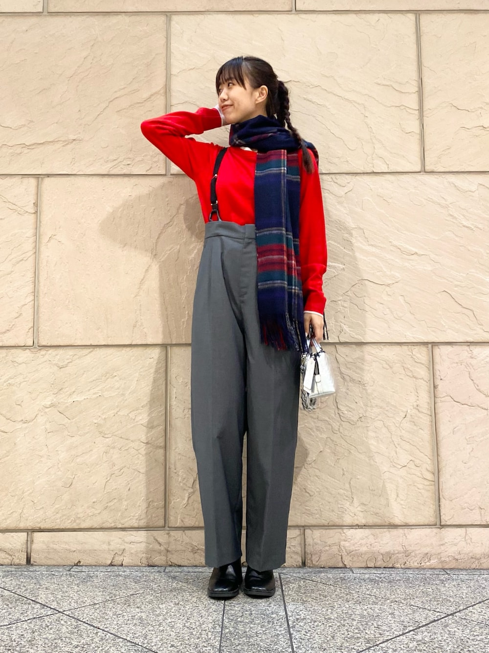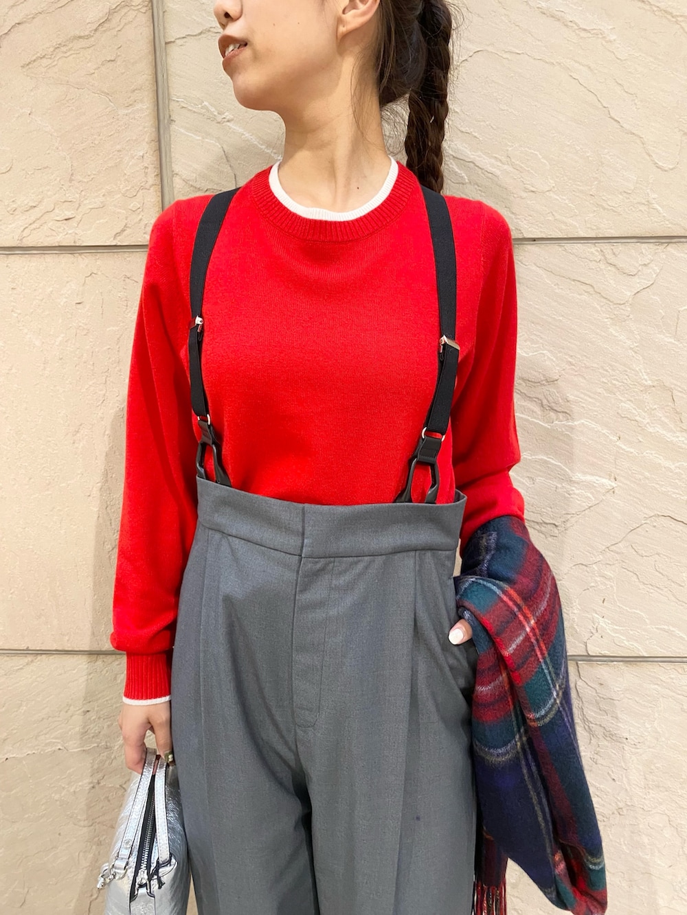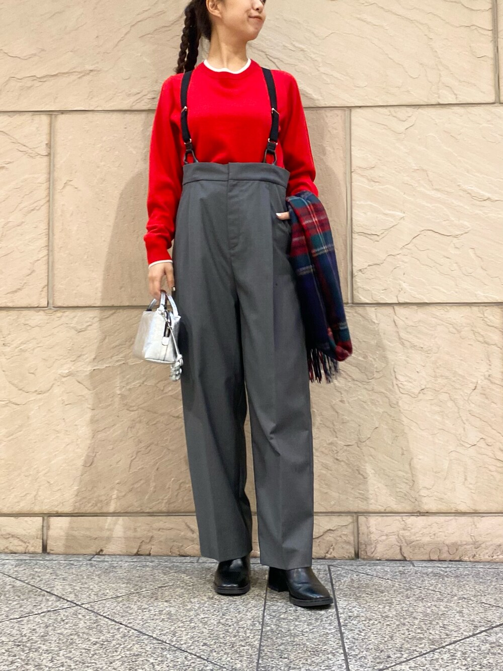 トレンドのサスペンダーパンツと合わせてウキウキクリスマスコーデにしました!