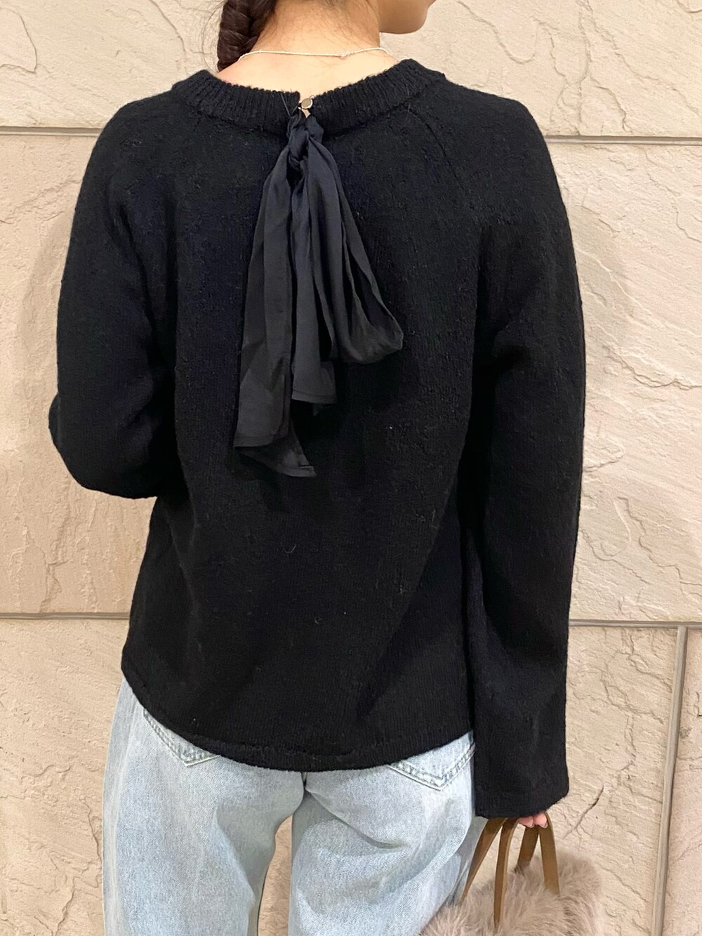 バックリボンニット