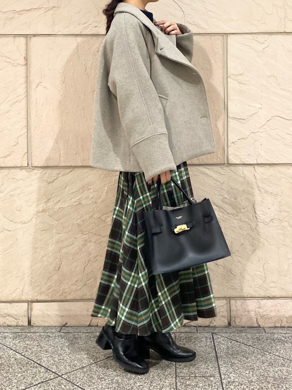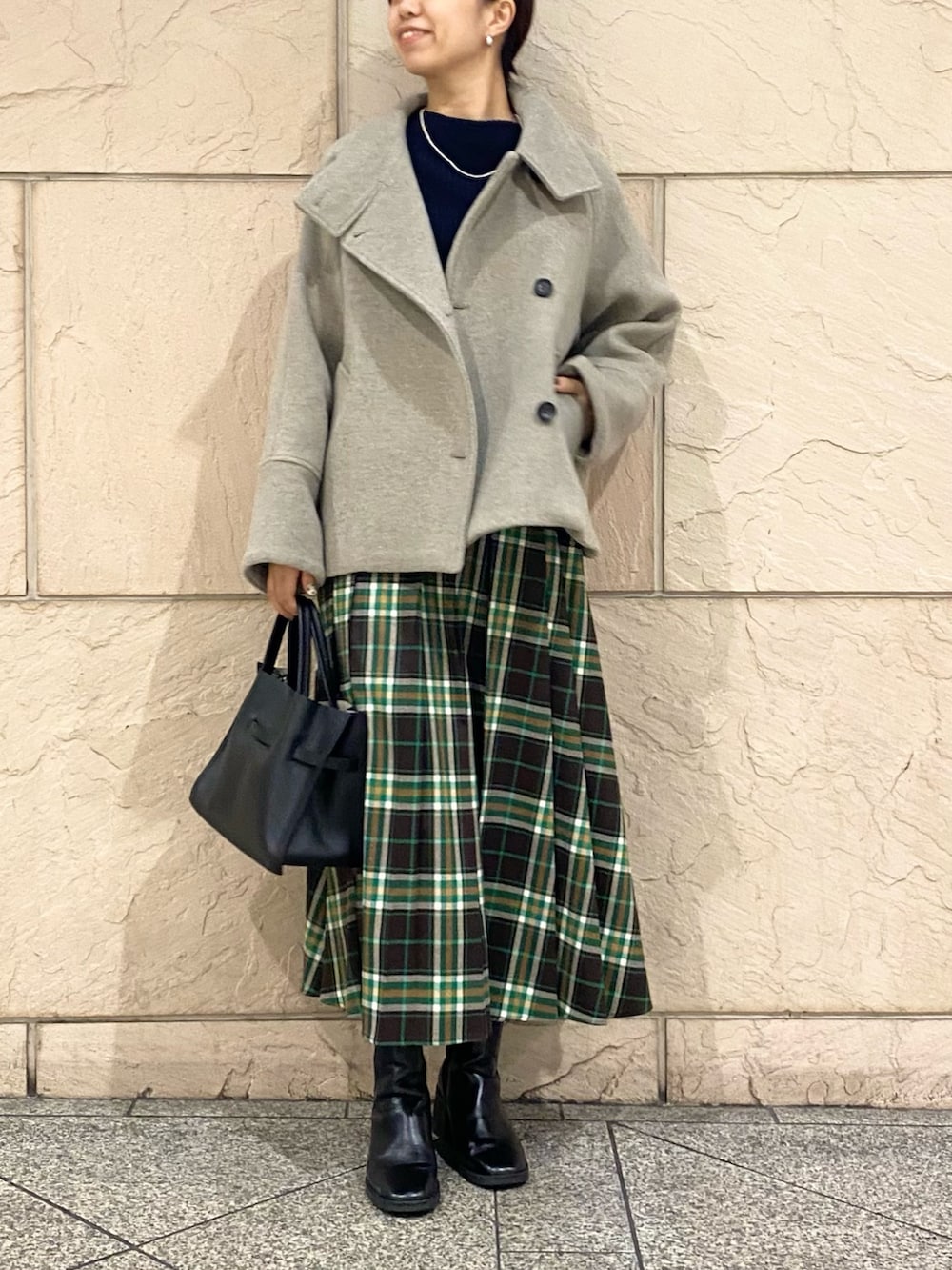 ショート丈のコートはフレアスカートとのバランスがバッチリなので