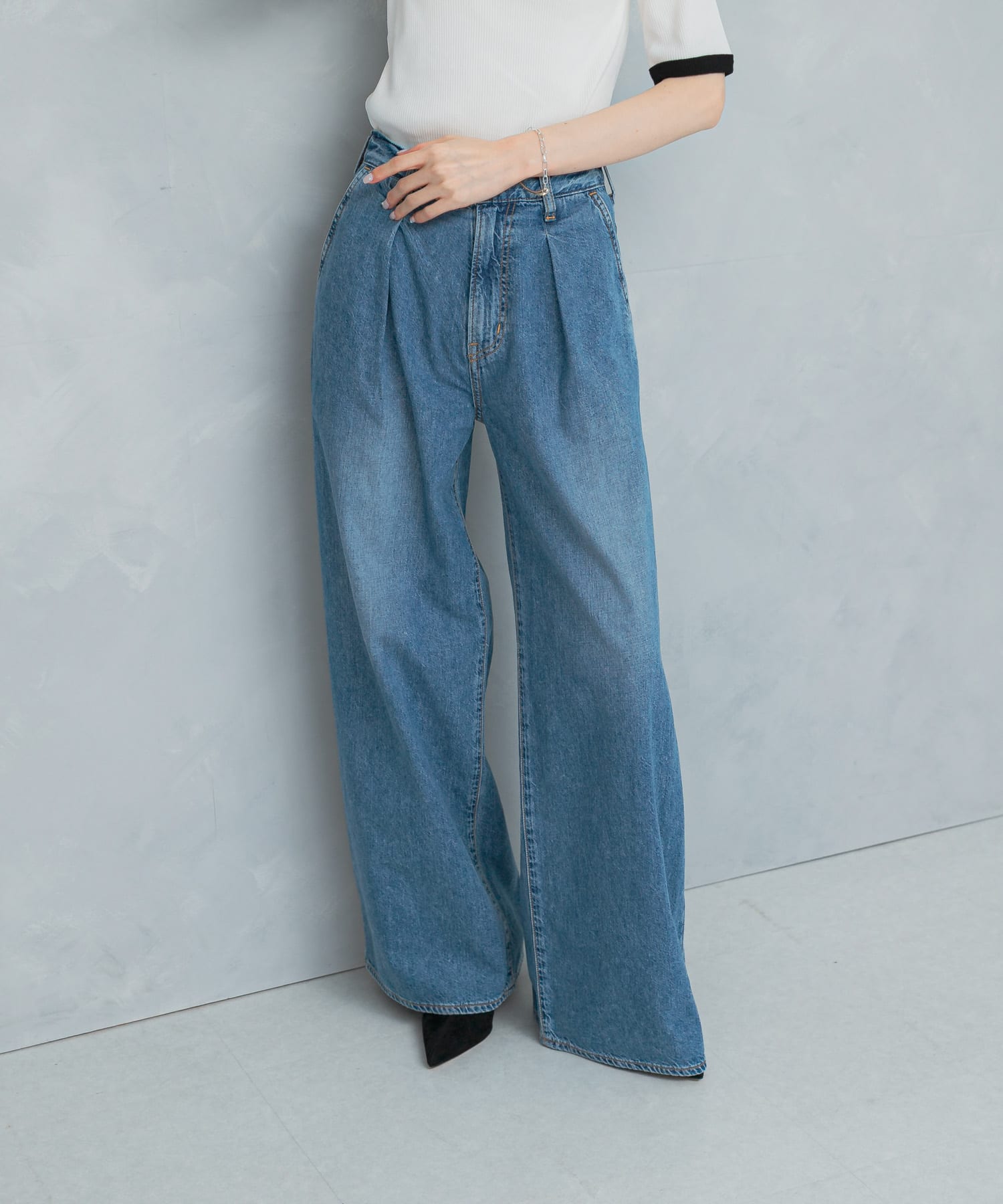 ジレはベルト付きなのでウエストマークするとスタイルアップにもなります!