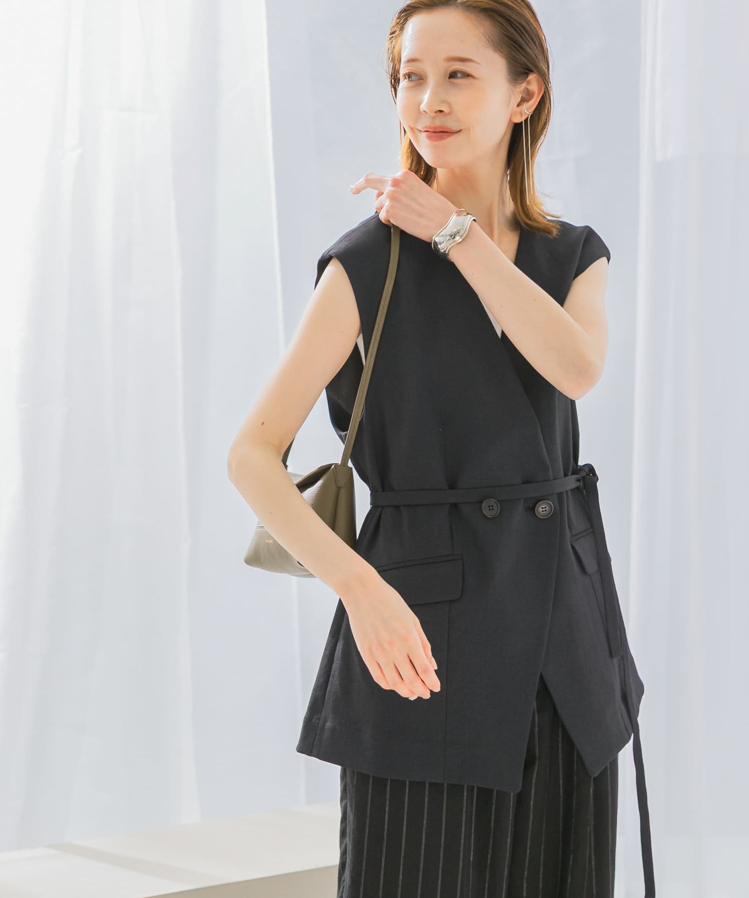 接触冷感のジレをプラスして綺麗目なスタイリングに。ジレはお洗濯でき二の腕ラインやウエストを程よく隠してくれるので体型カバーになり且つオシャレに見せてくれます♪