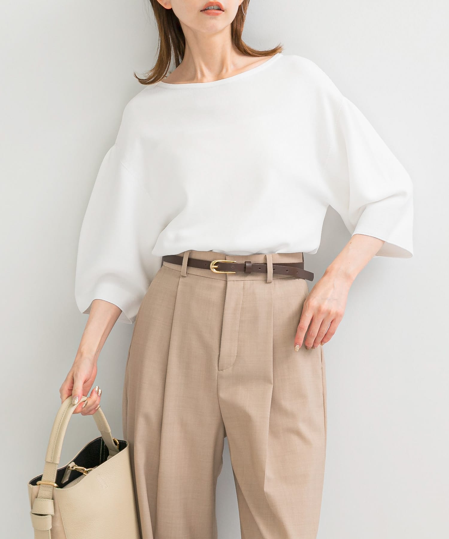 防シワハイウエストワイドスラックス