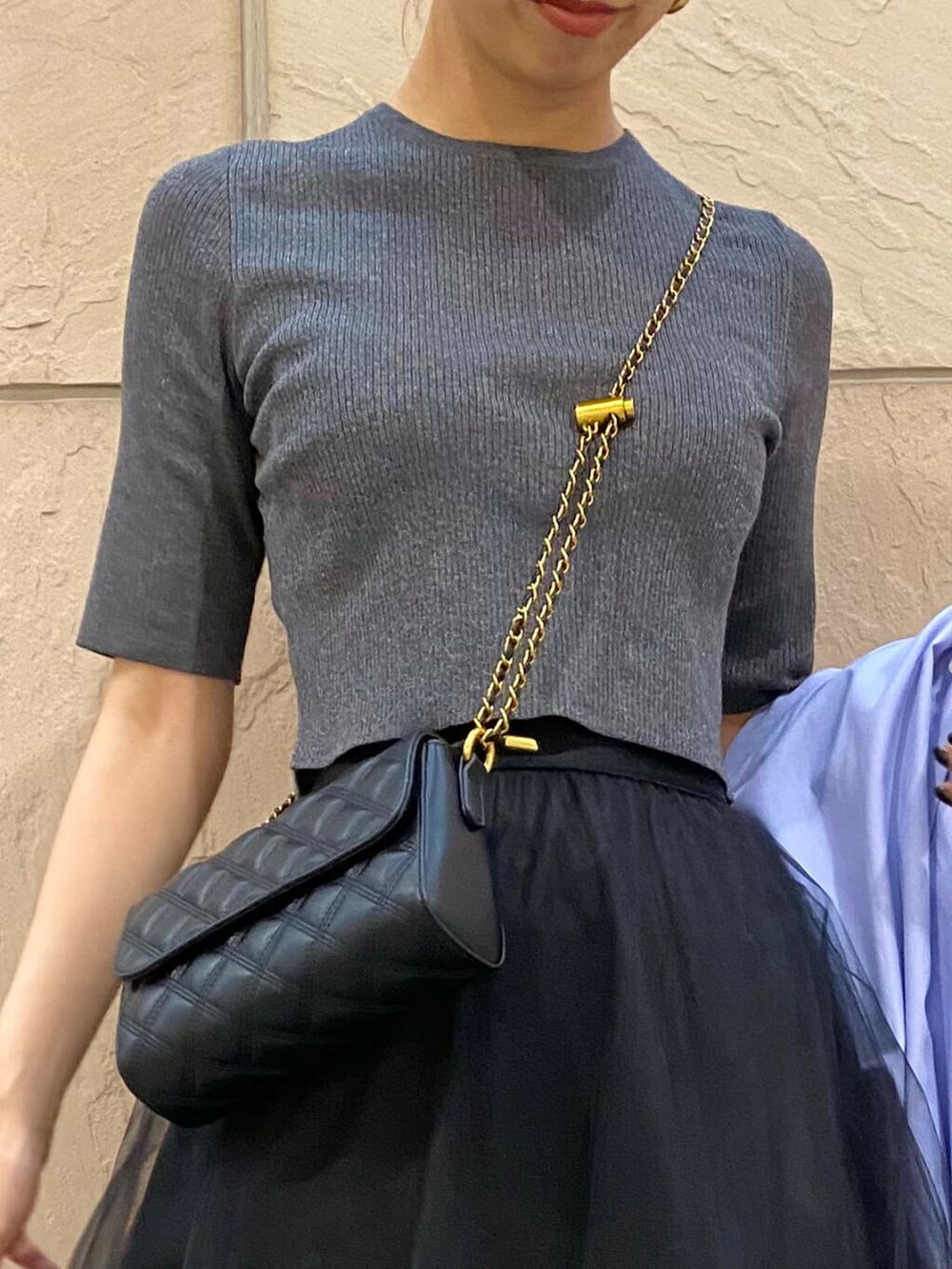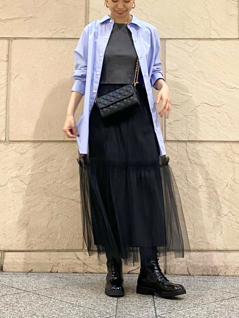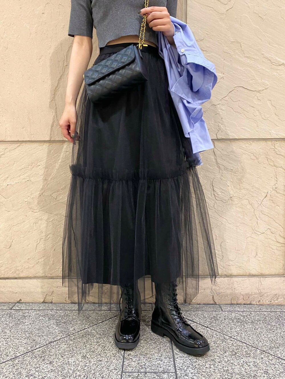チュールスカート×クロップドトップスでバランス良く着こなしました。
