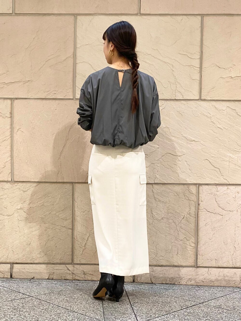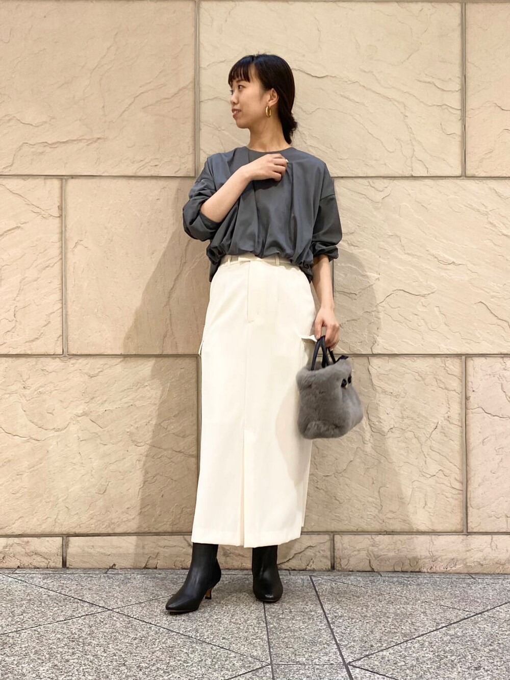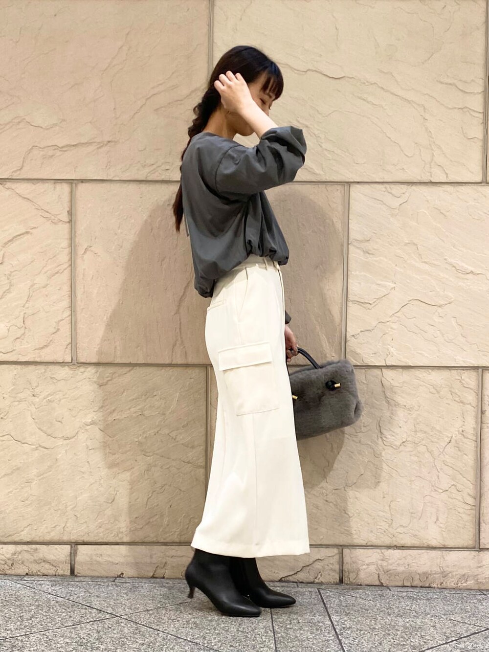 丈短めなので普段インして着ているハイウエストのボトムがおすすめです〜!