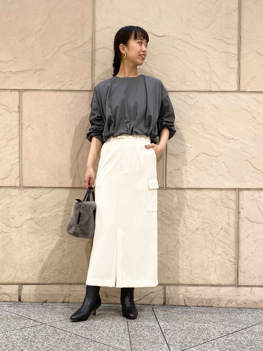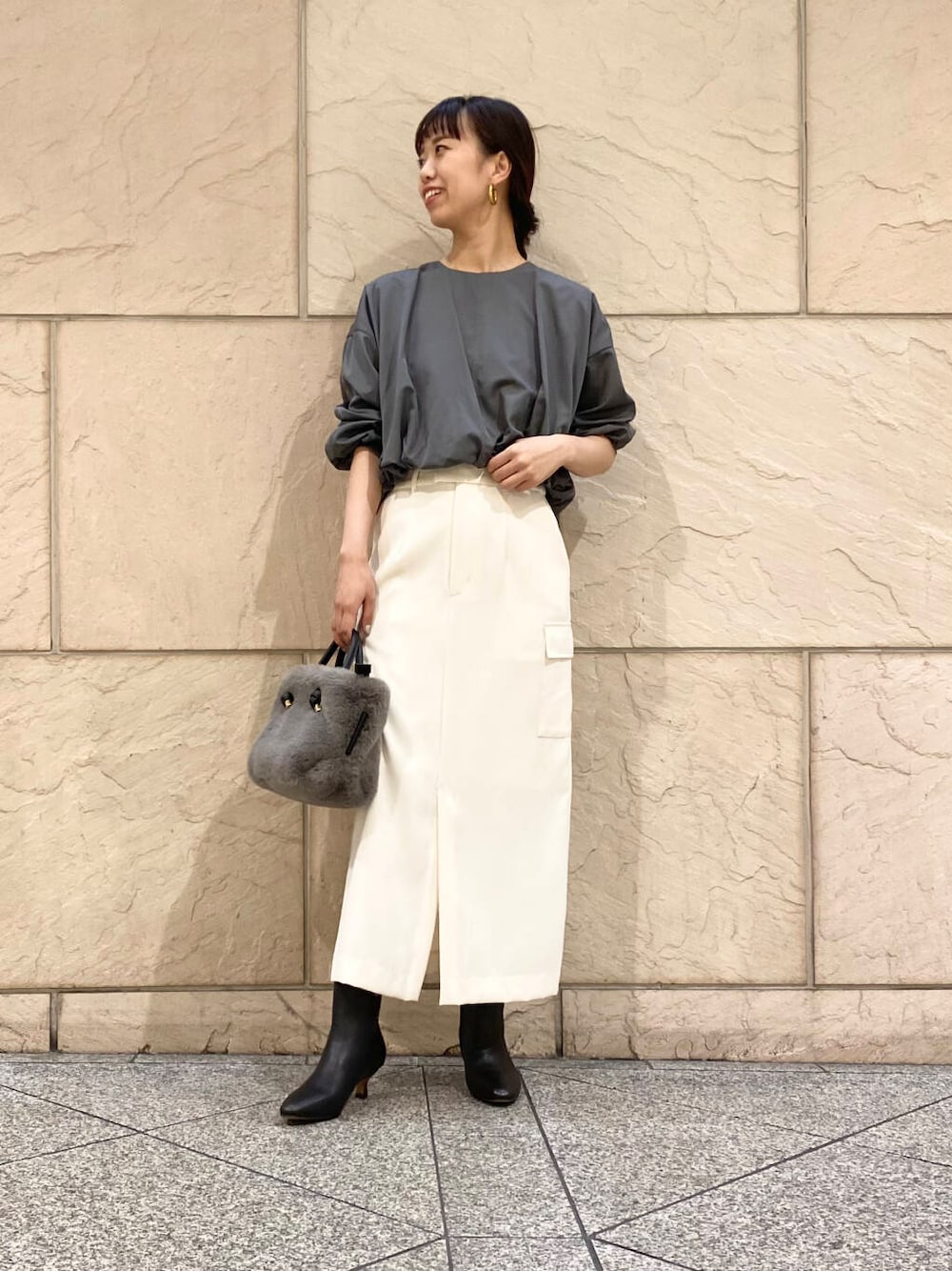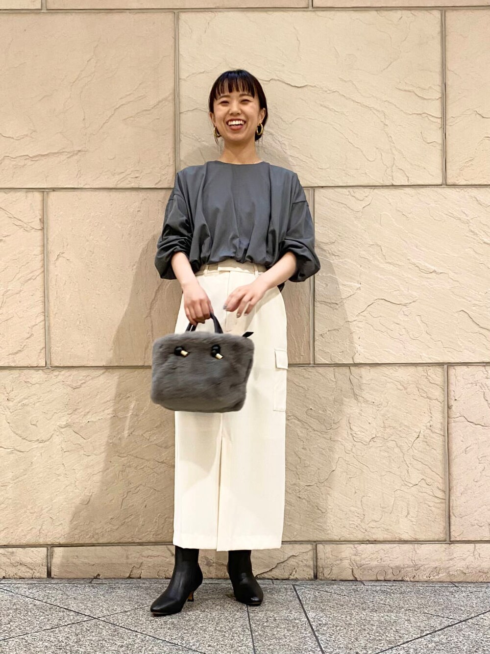 丈短めなので普段インして着ているハイウエストのボトムがおすすめです〜!