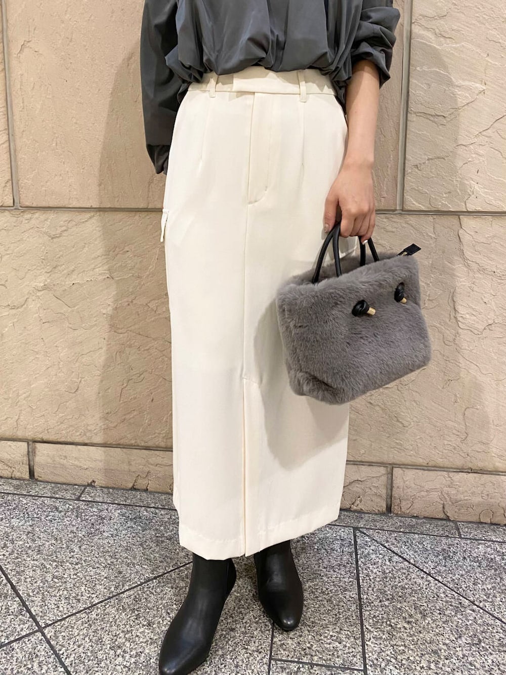 チャコールカラーとハリのある生地が